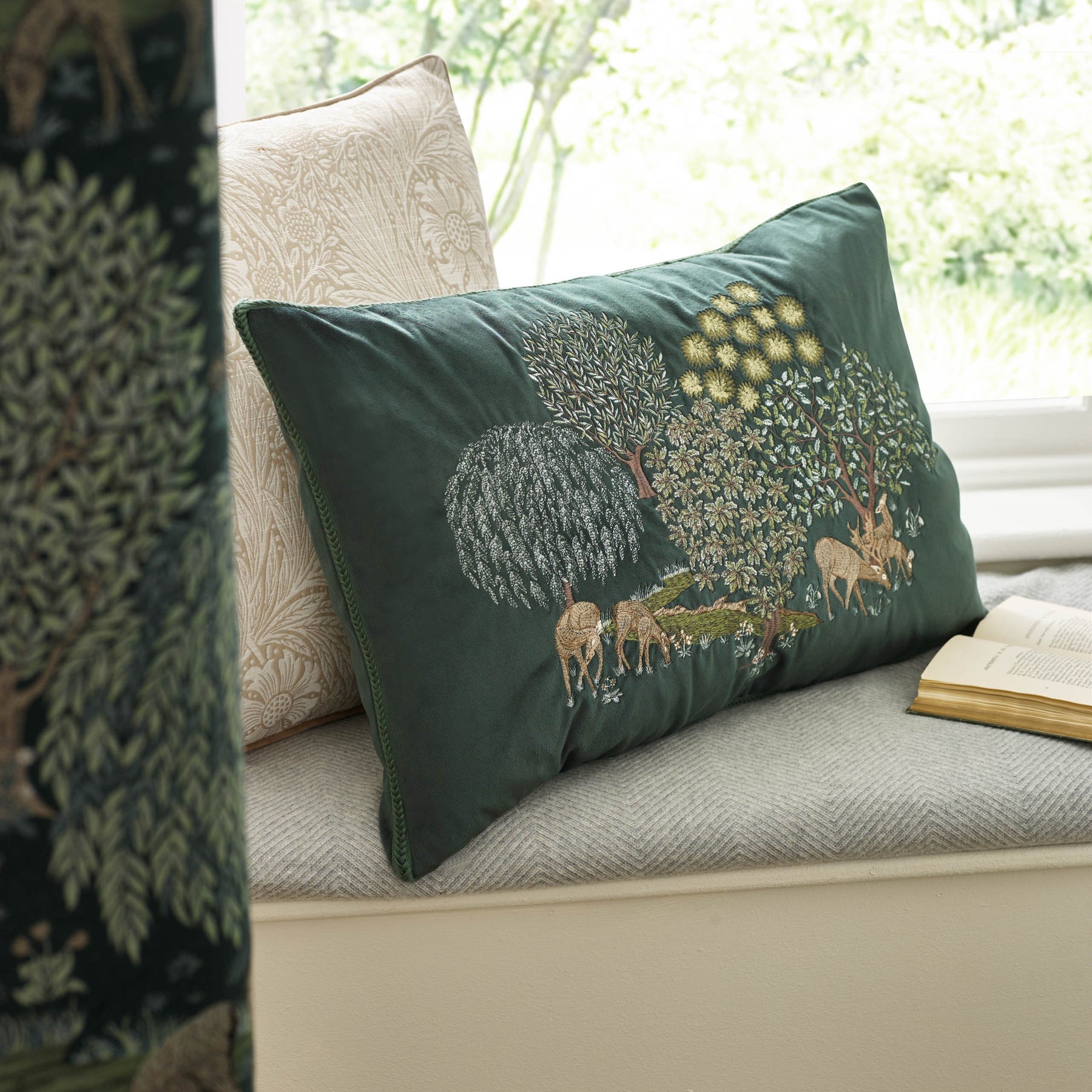 Morris & Co. Brook Embroidered Velvet 40cm x 60cm Filled Boudoir Green