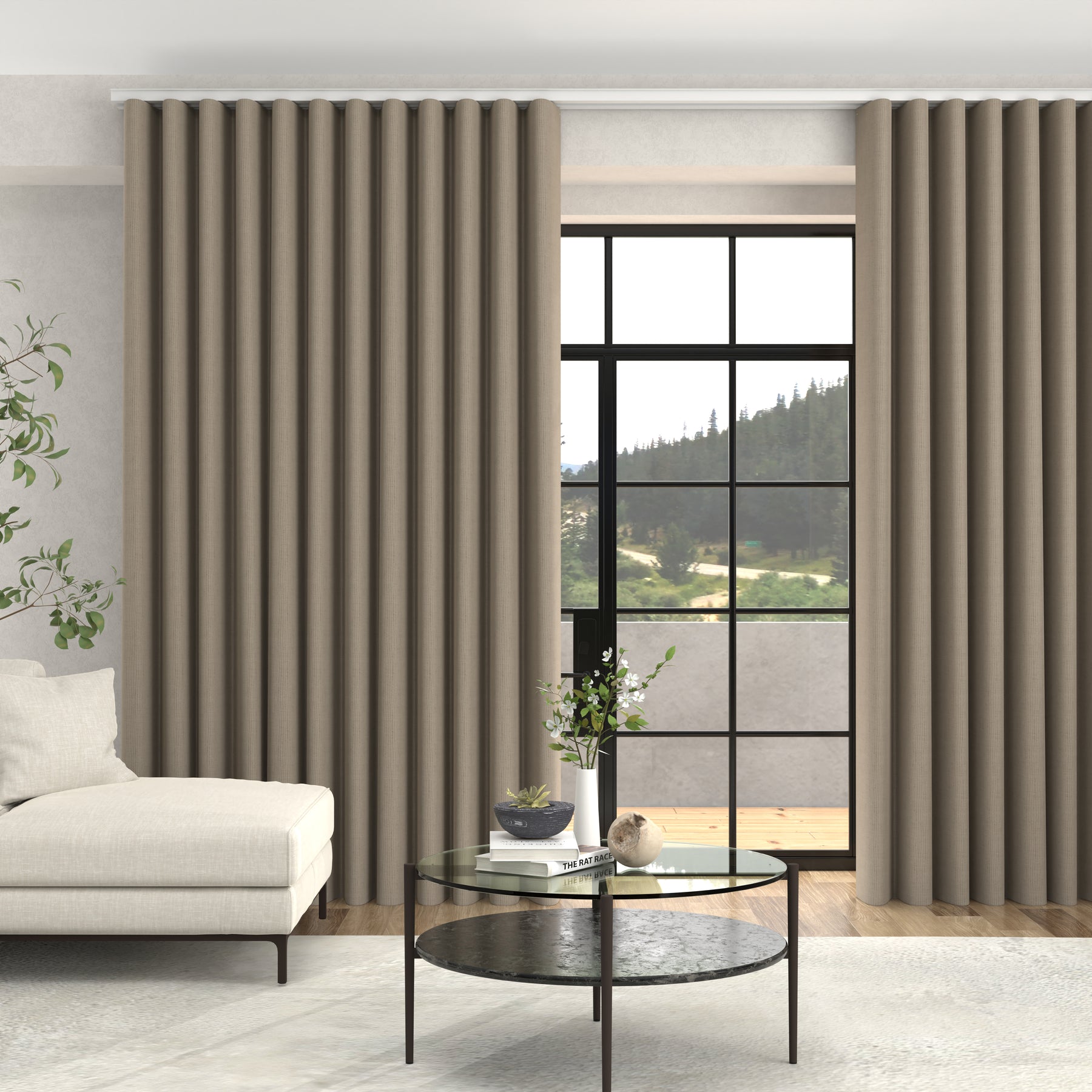 • Beige curtains