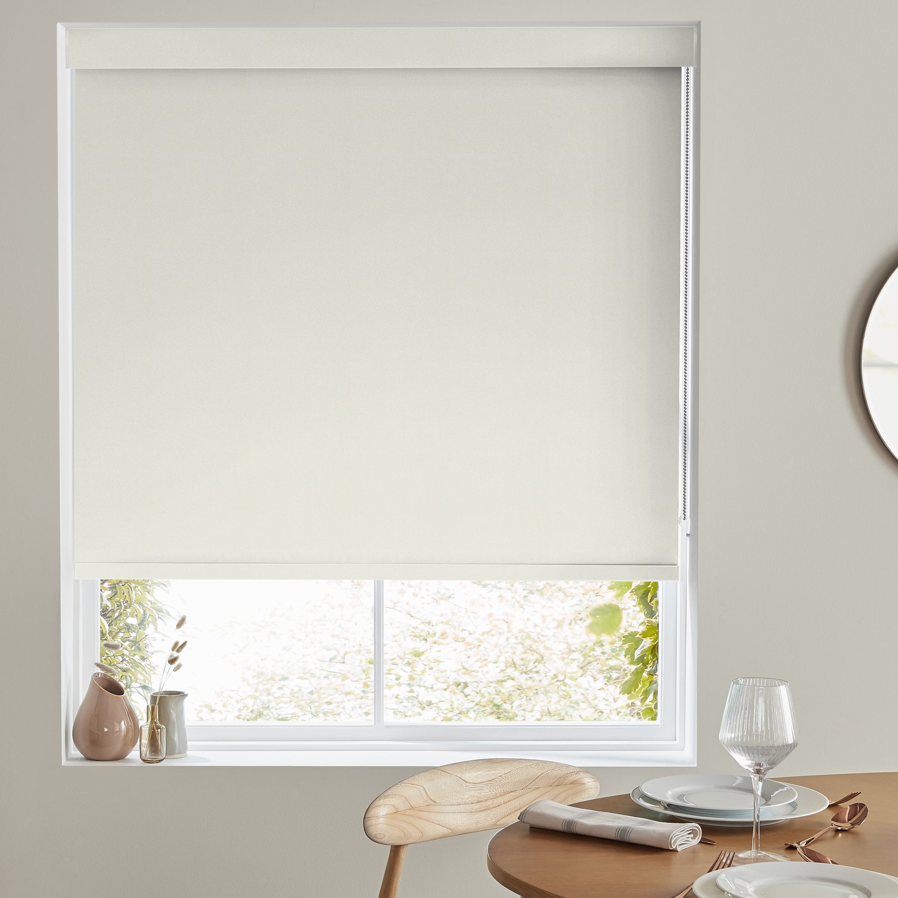Roller blinds can have the operating chain on either side, so you can choose which side works best for your window.