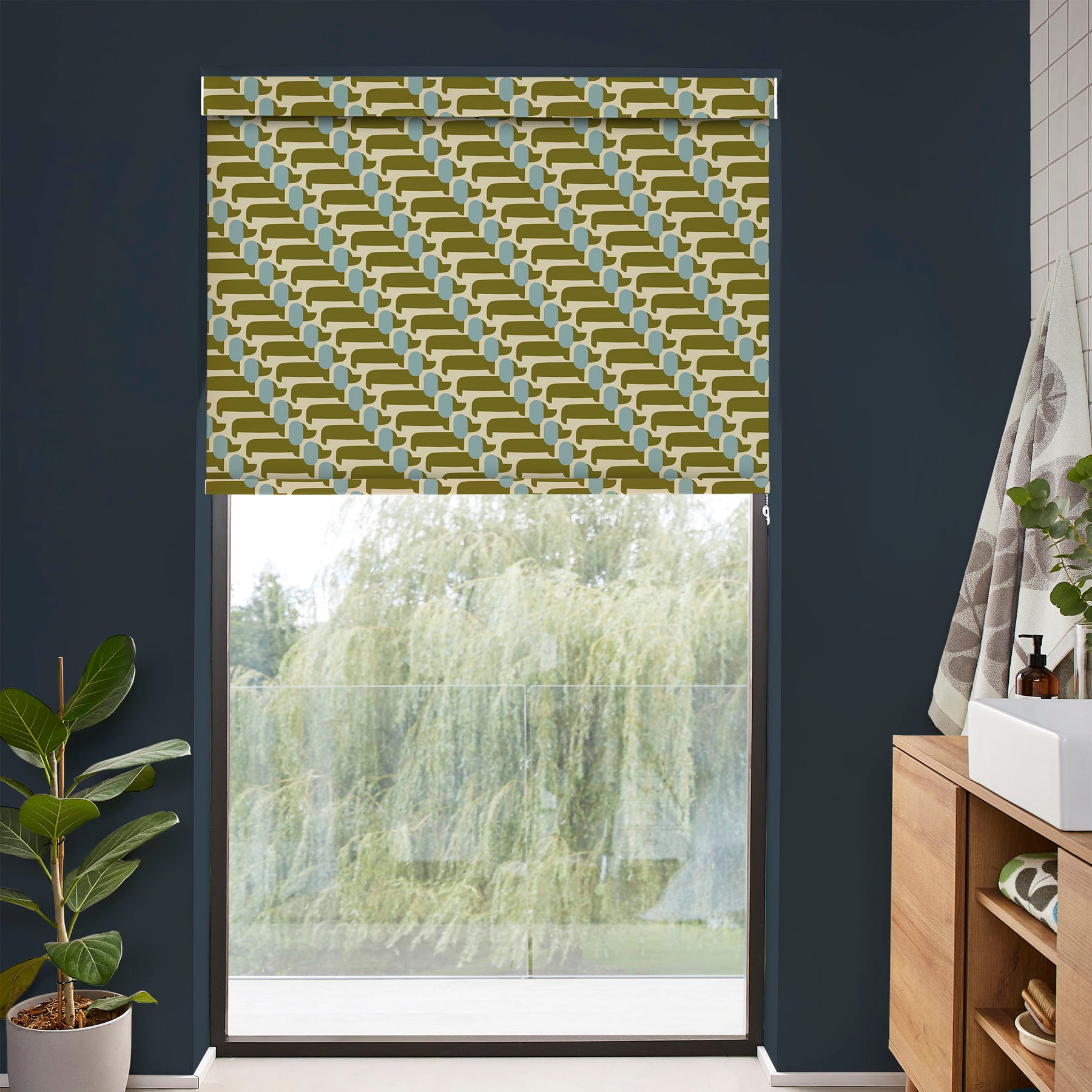 A brand new design from the house hold name Orla Kiely. Wonderful new geometric retro floral prints are available in an abundance of fresh feel good tones sure to brighten any room in the home. This made to measure translucent roller blind allows light to pass through its weave and will sit neatly inside or outside your window space and comes with the option to compete the look with matching pelmet top.