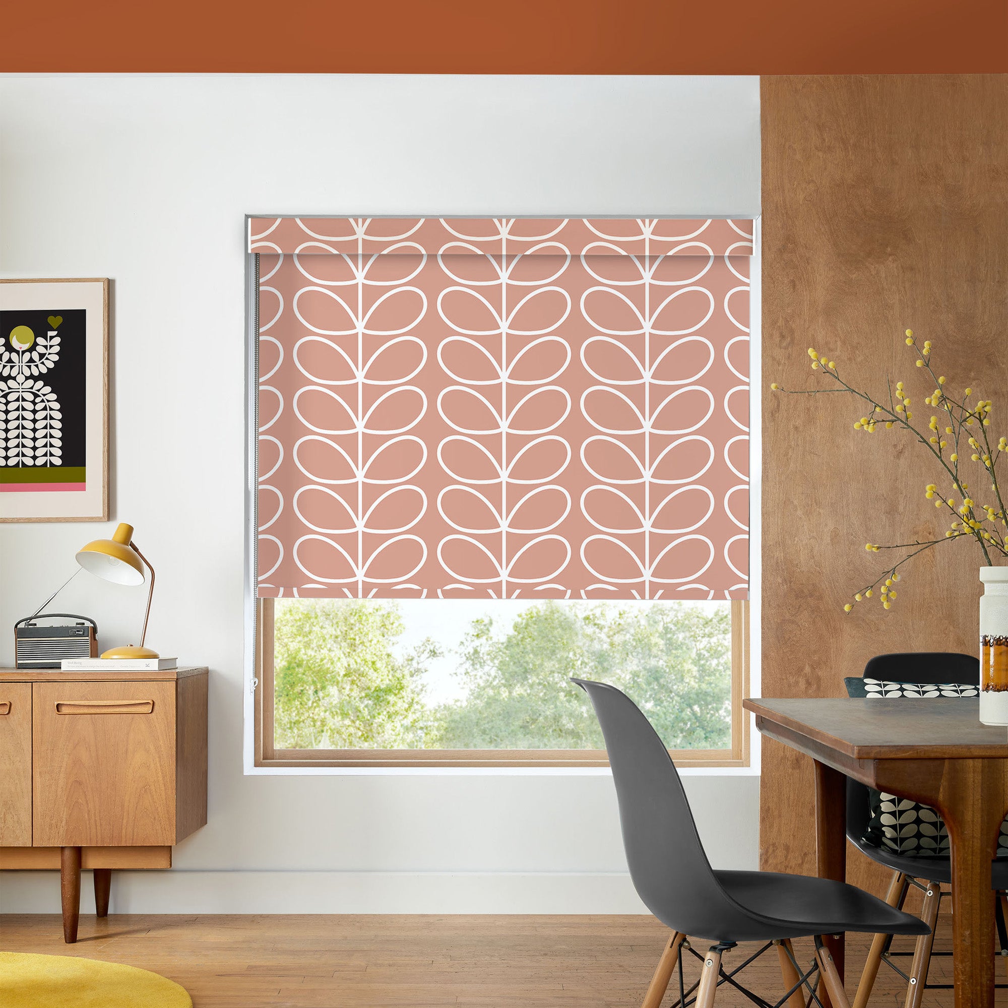 A fresh design for the Orla Kiely range. A wide variety of vibrant, feel-good colours are available in wonderful new geometric vintage floral motifs that are sure to brighten any room in the house. This custom made to measure blackout roller blind helps to block out light, making it a great choice for bedrooms. With the option to complete the design with a matching pelmet top, this attractive blind will fit nicely within or outside your window area.
