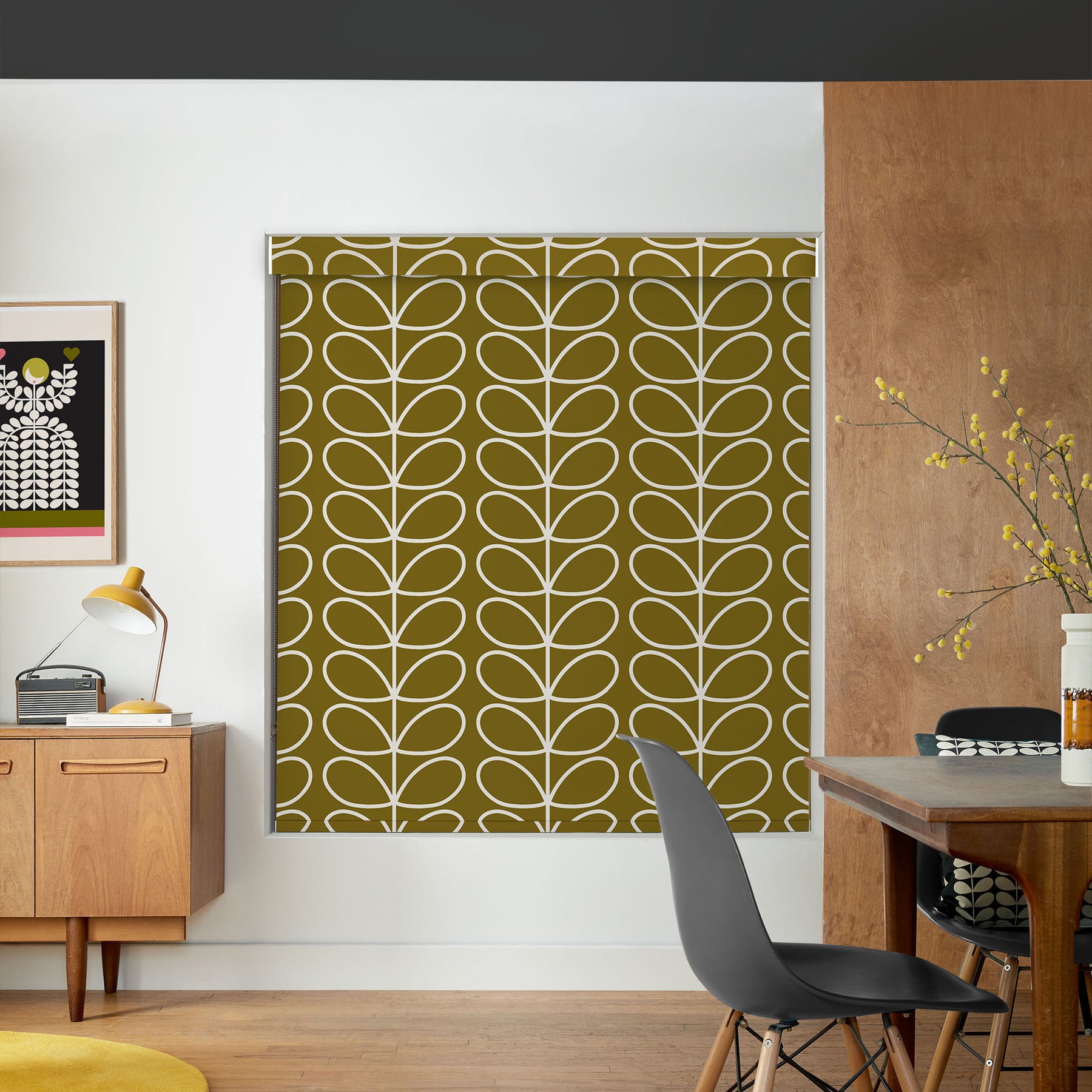 A fresh design for the Orla Kiely range. A wide variety of vibrant, feel-good colours are available in wonderful new geometric vintage floral motifs that are sure to brighten any room in the house. This custom made to measure blackout roller blind helps to block out light, making it a great choice for bedrooms. With the option to complete the design with a matching pelmet top, this attractive blind will fit nicely within or outside your window area.