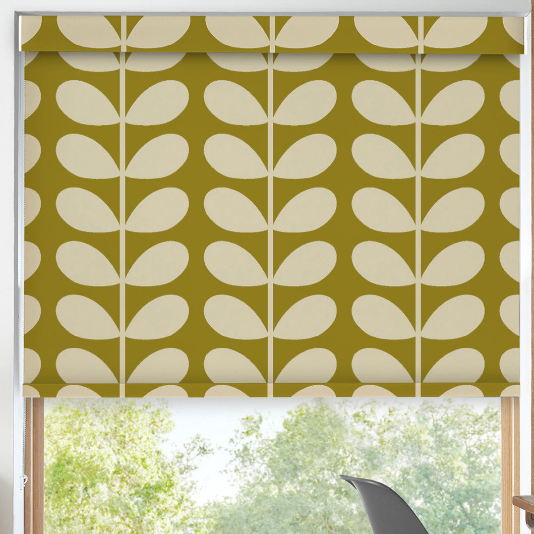 A fresh design for the Orla Kiely range. A wide variety of vibrant, feel-good colours are available in wonderful new geometric vintage floral motifs that are sure to brighten any room in the house. This custom made to measure blackout roller blind helps to block out light, making it a great choice for bedrooms. With the option to complete the design with a matching pelmet top, this attractive blind will fit nicely within or outside your window area.