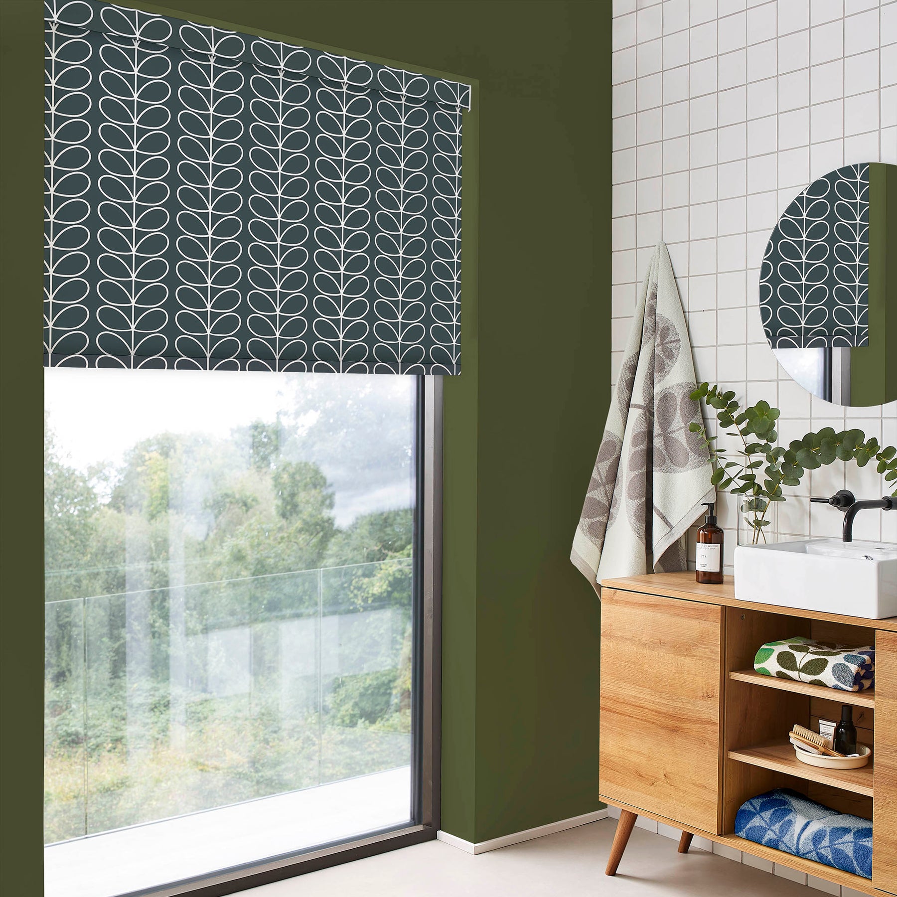 A fresh design for the Orla Kiely range. A wide variety of vibrant, feel-good colours are available in wonderful new geometric vintage floral motifs that are sure to brighten any room in the house. This custom made to measure blackout roller blind helps to block out light, making it a great choice for bedrooms. With the option to complete the design with a matching pelmet top, this attractive blind will fit nicely within or outside your window area.