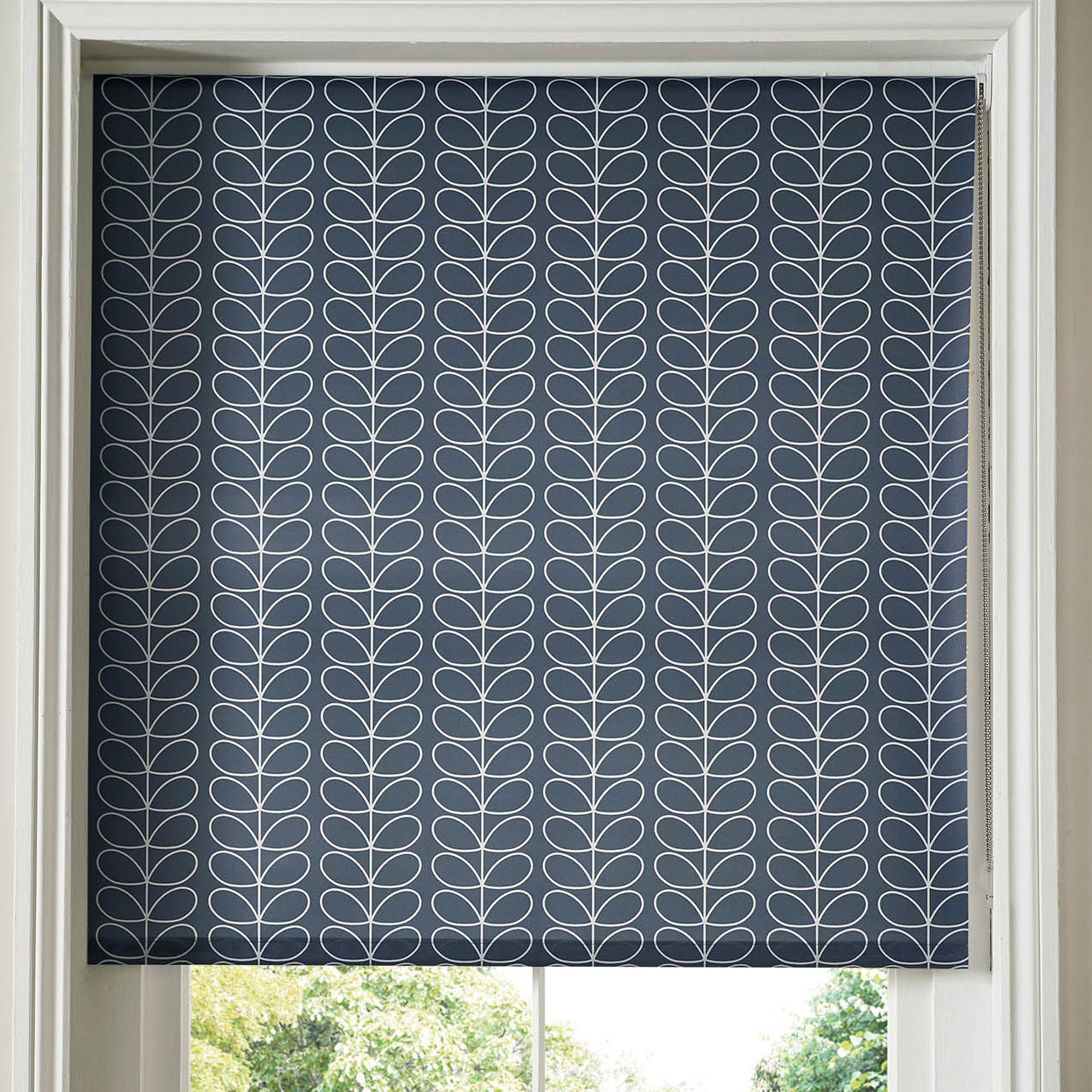 The linear stem blackout roller blind features an outline of the iconic print by designer Orla Kiely. The Linear Stem design is available in a selection of tones to choose from all of which come finished with a matching coloured bottom bar. This made to measure designer roller blind features a 100% polyester blackout fabric which is white on its reverse. This type of blind is ideal for blocking light from entering through the fabric.