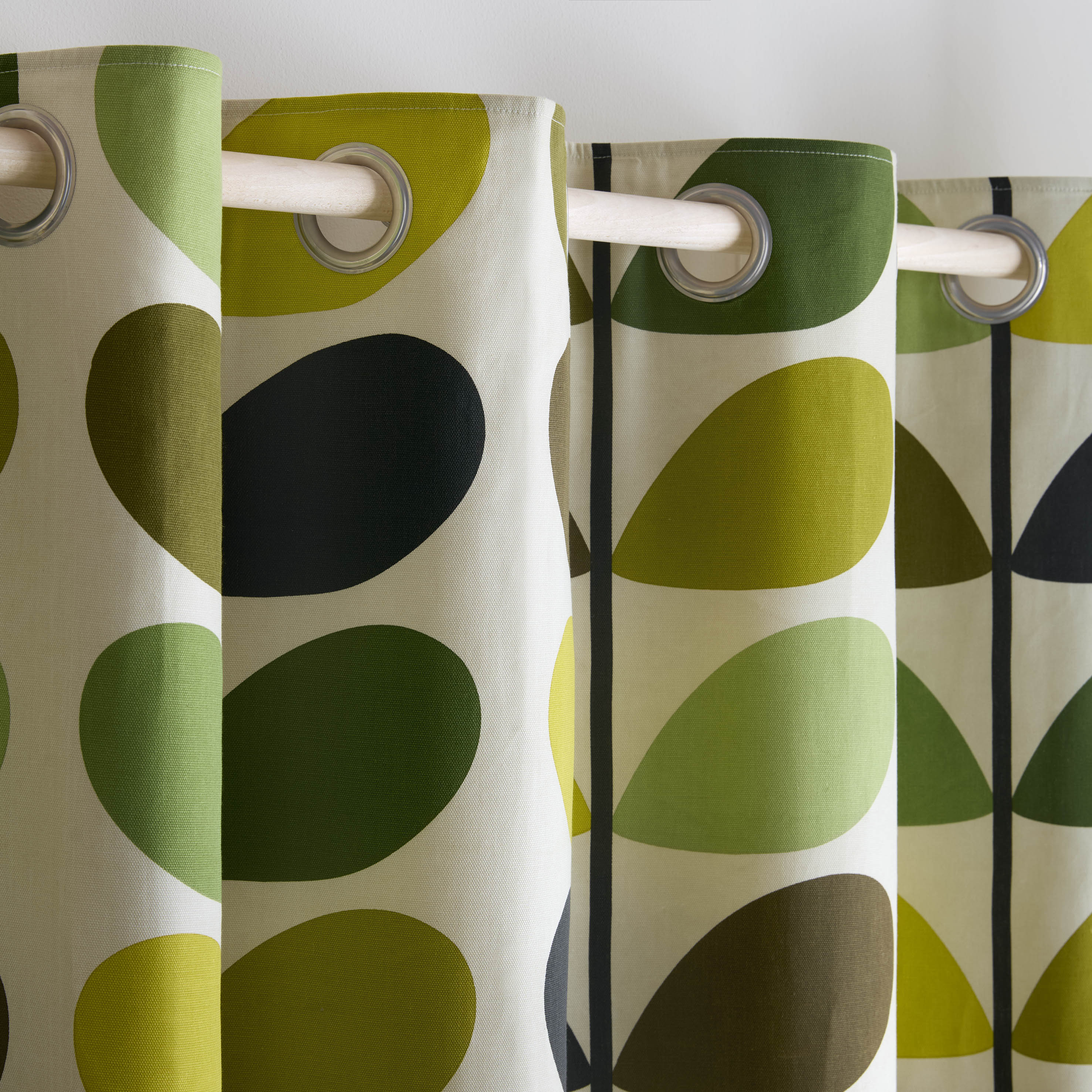 Enhance your interior with these striking eyelet curtains showcasing Orla Kiely’s renowned Multi Stem pattern. Printed on a durable 100% cotton Panama fabric, this popular design combines lively green and deep ochre hues to bring a vibrant, vintage-inspired feel to your space. The curtains are lined with Orla Kiely’s signature Linear Stem print in subtle neutral tones, crafted from a 50% cotton and 50% polyester blend for added structure and privacy.