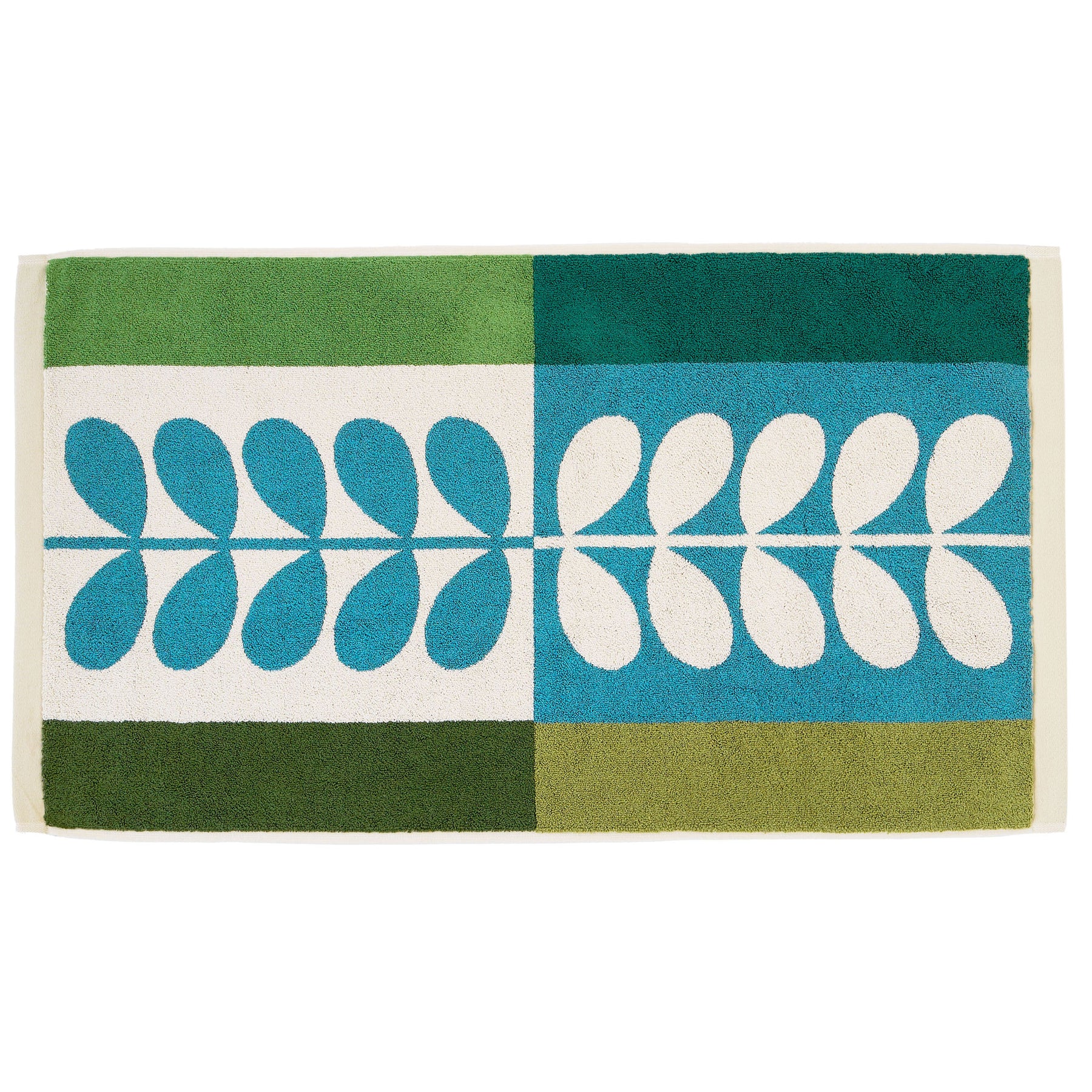 A blend of rich green shades and a chequerboard layout highlight Orla Kiely's iconic stem design, featured in bold turquoise blue. Made from 100% cotton, this vibrant bathmat boasts a high absorbency of 950gsm.