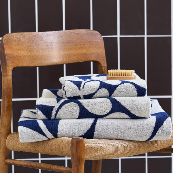 Add a touch of bold retro style to your bathroom with the 100% cotton Orla Kiely Sycamore Stripe Towels. These towels feature a sophisticated colour palette of rich deep blue and warm cream, giving your bathroom a cool, mid-century look.