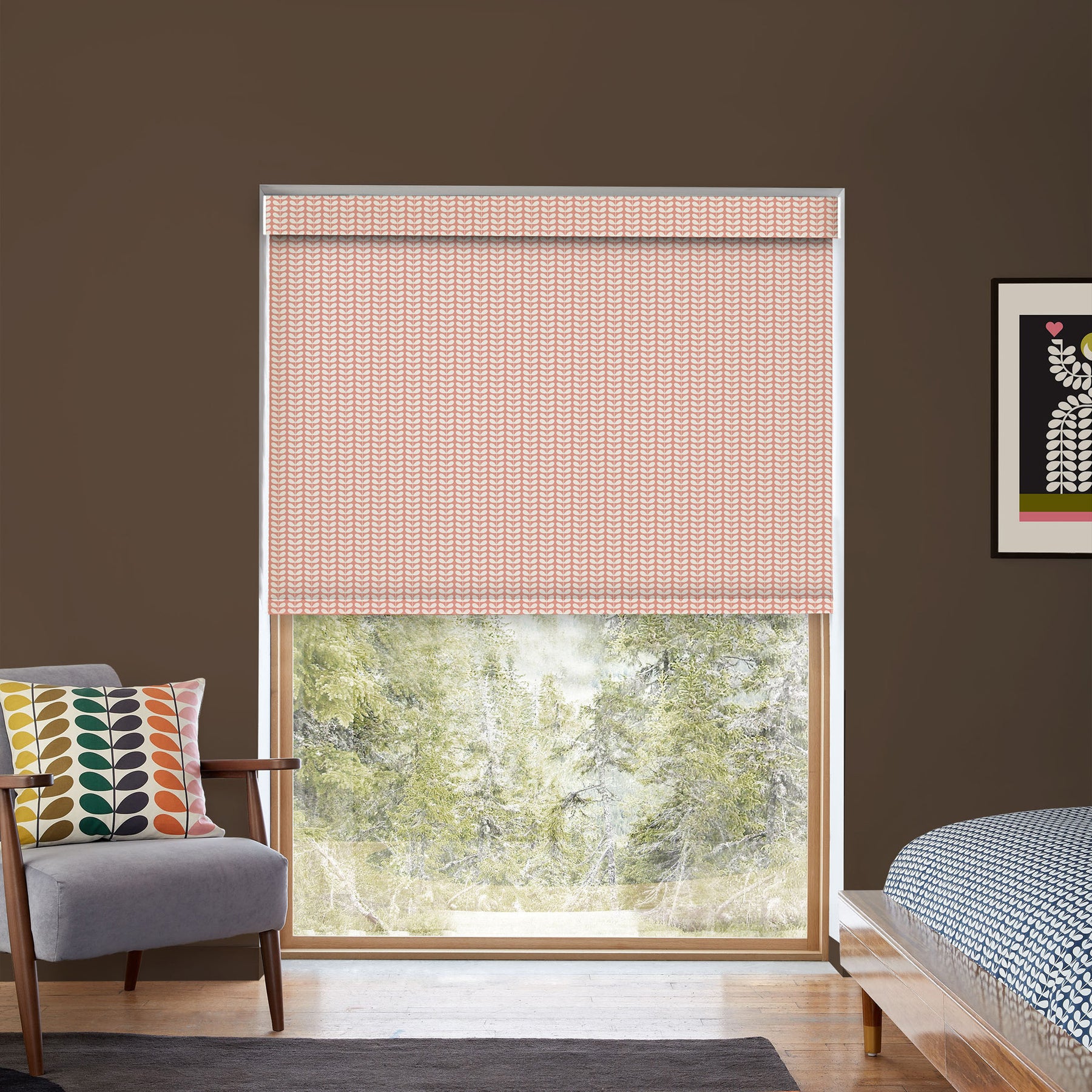 A fresh design for the Orla Kiely range. A wide variety of vibrant, feel-good colours are available in wonderful new geometric vintage floral motifs that are sure to brighten any room in the house. This custom made to measure blackout roller blind helps to block out light, making it a great choice for bedrooms. With the option to complete the design with a matching pelmet top, this attractive blind will fit nicely within or outside your window area.