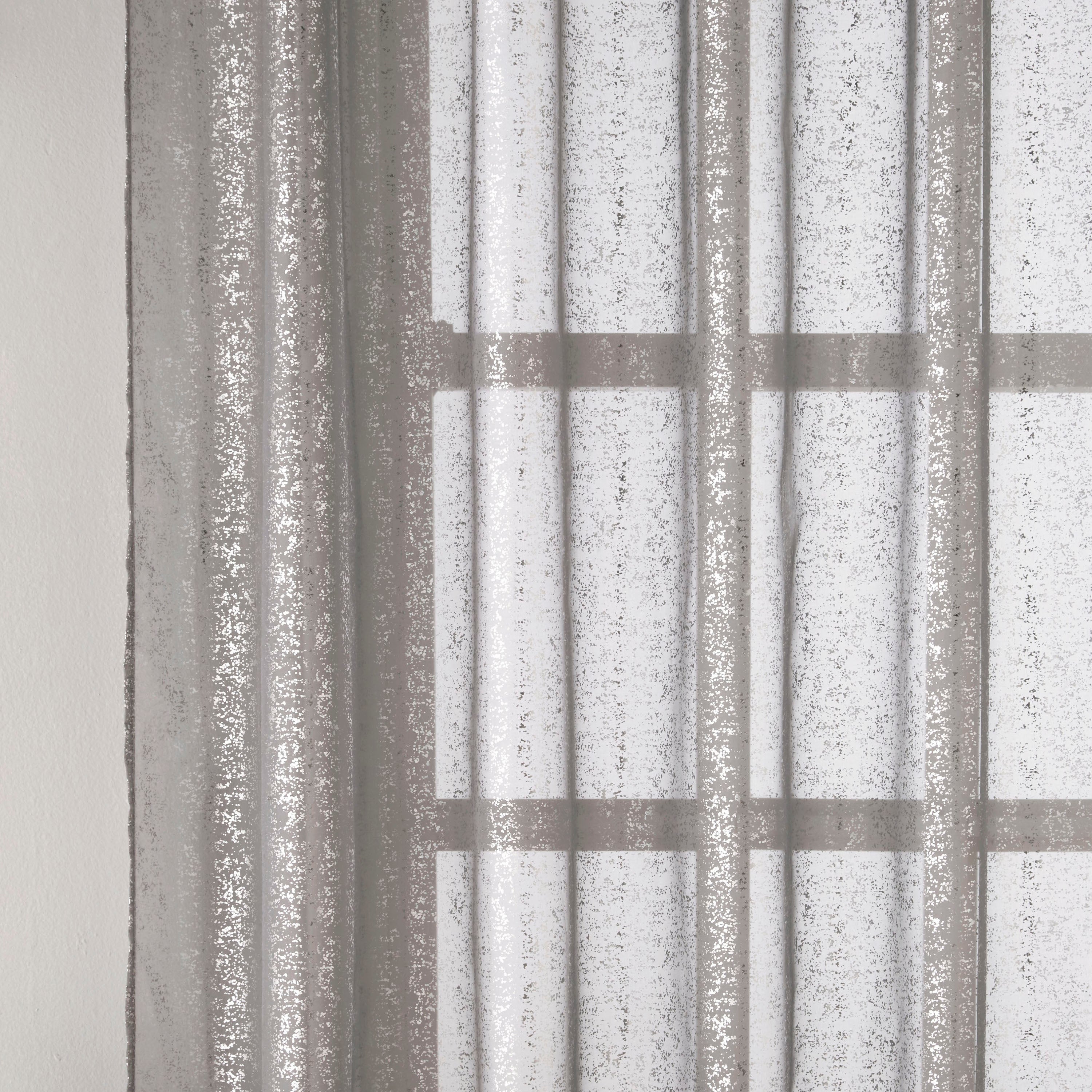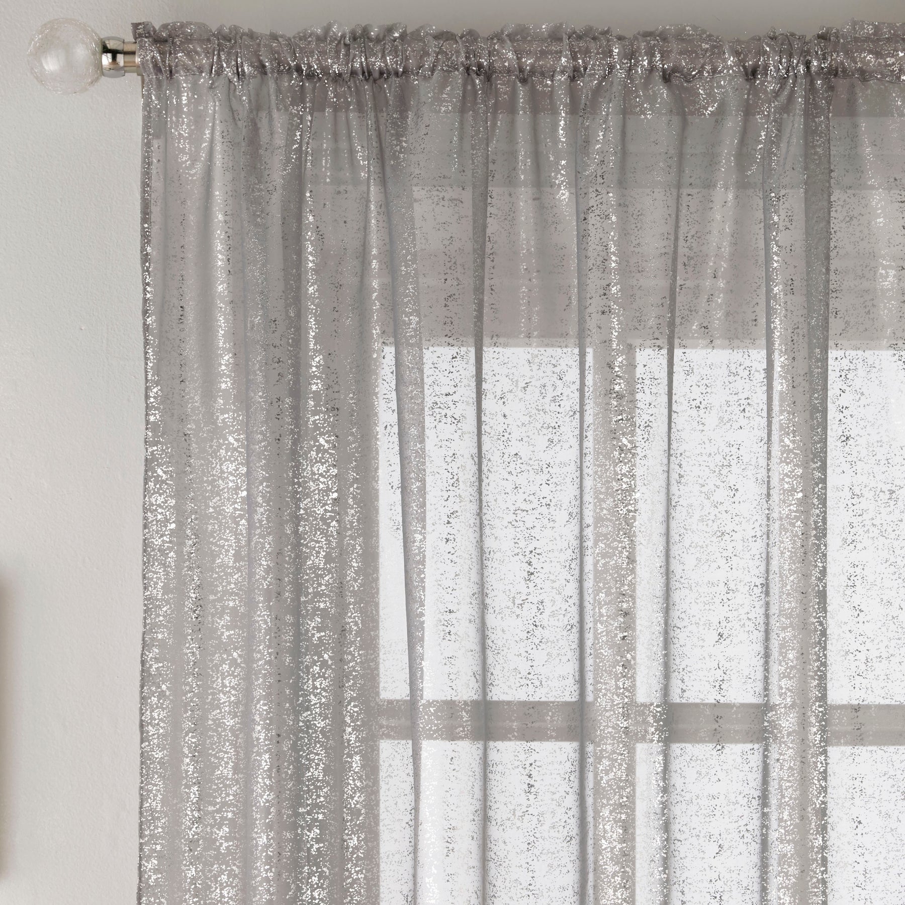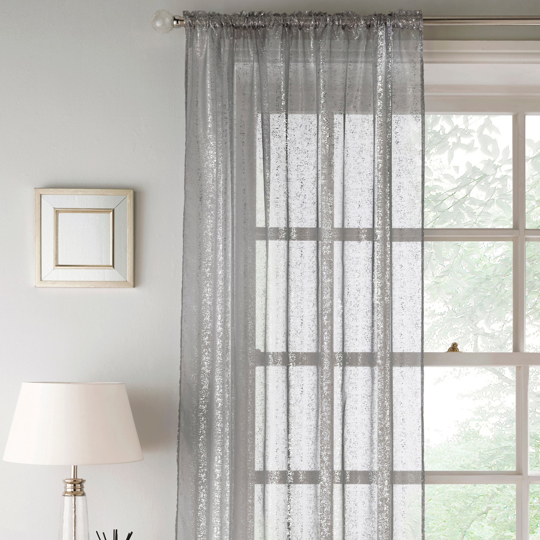 The Pandora voile panel's all-over metallic silver design brings glitz and sparkle to your house.
