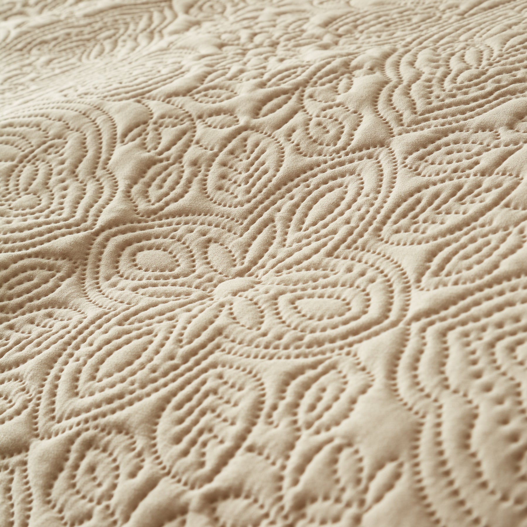 Embrace the tranquil beauty of nature with this intricately textured bedspread, showcasing a warm, earthy palette that brings a cosy touch to any room. The quilted design adds an extra layer of comfort, while the elaborate pinsonic pattern adds dimension and character to your sleeping space. This impressive collection of diverse designs blends global influences with a contemporary take on traditional patterns and timeless textures.