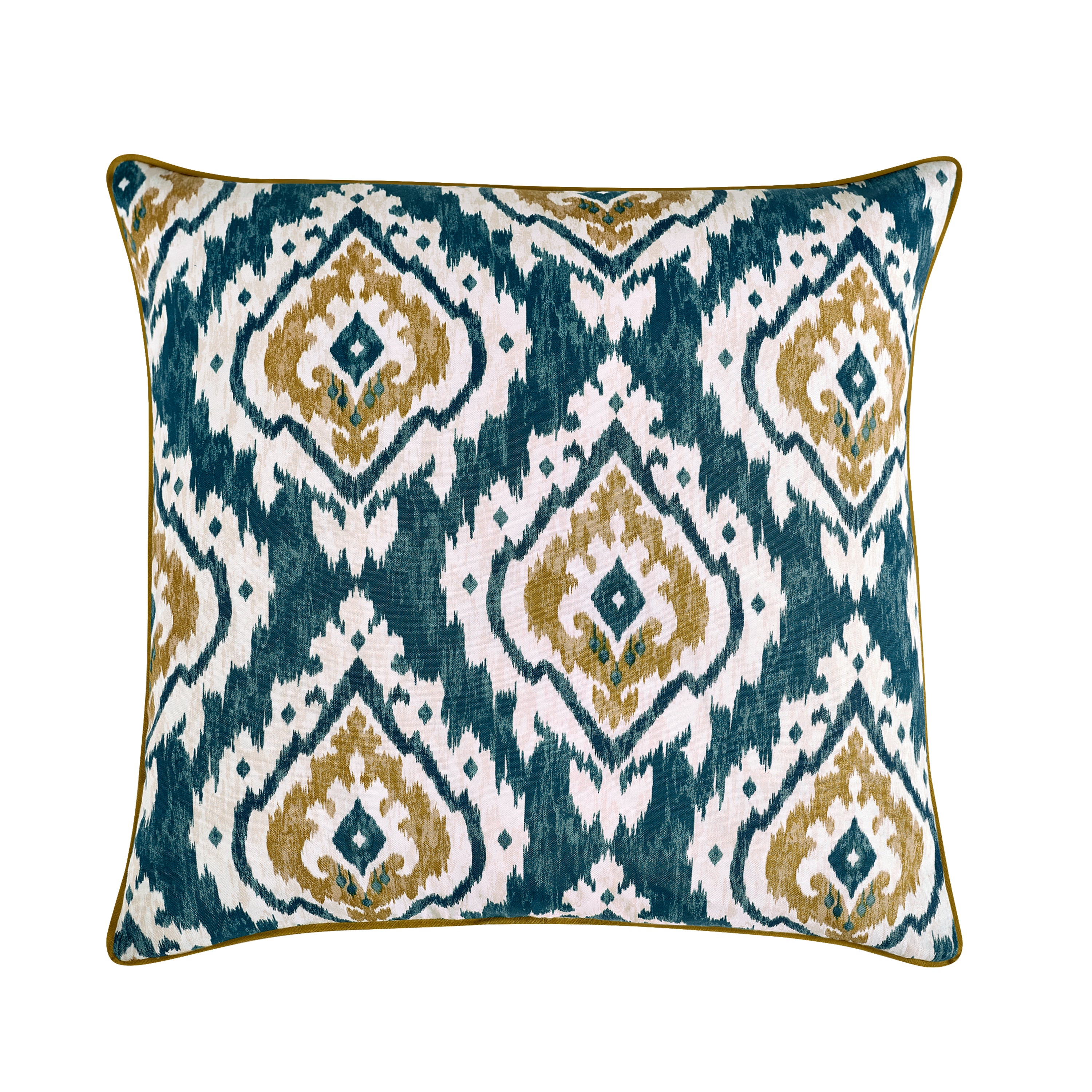 Experience a fusion of traditional and modern design elements with this bold piece. The intricate diamond-shaped motifs, inspired by the centuries-old Ikat weaving technique, reflect a sense of cultural heritage and craftsmanship. This eclectic collection showcases artisan motifs and timeless textures, crafted to exceed both quality and human-ecological safety standards.