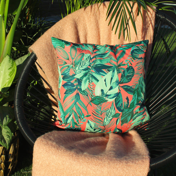 Psychedelic Jungle Tropical Outdoor Filled Cushion 43cm x 43cm Coral