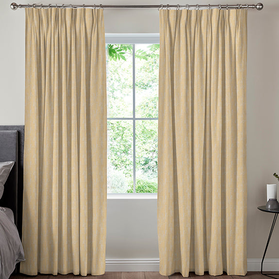 Pencil Pleat Heading - Pencil pleat curtains can be fitted to tracks or poles, and so curtains with this heading are the most versatile. This heading will work in any room style, and particularly well in traditional settings with a more traditional fabric design.