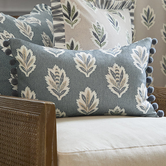 Sanderson Sessile Leaf Pom Pom Trim Printed 30cm x 50cm Filled Boudoir Delph Blue