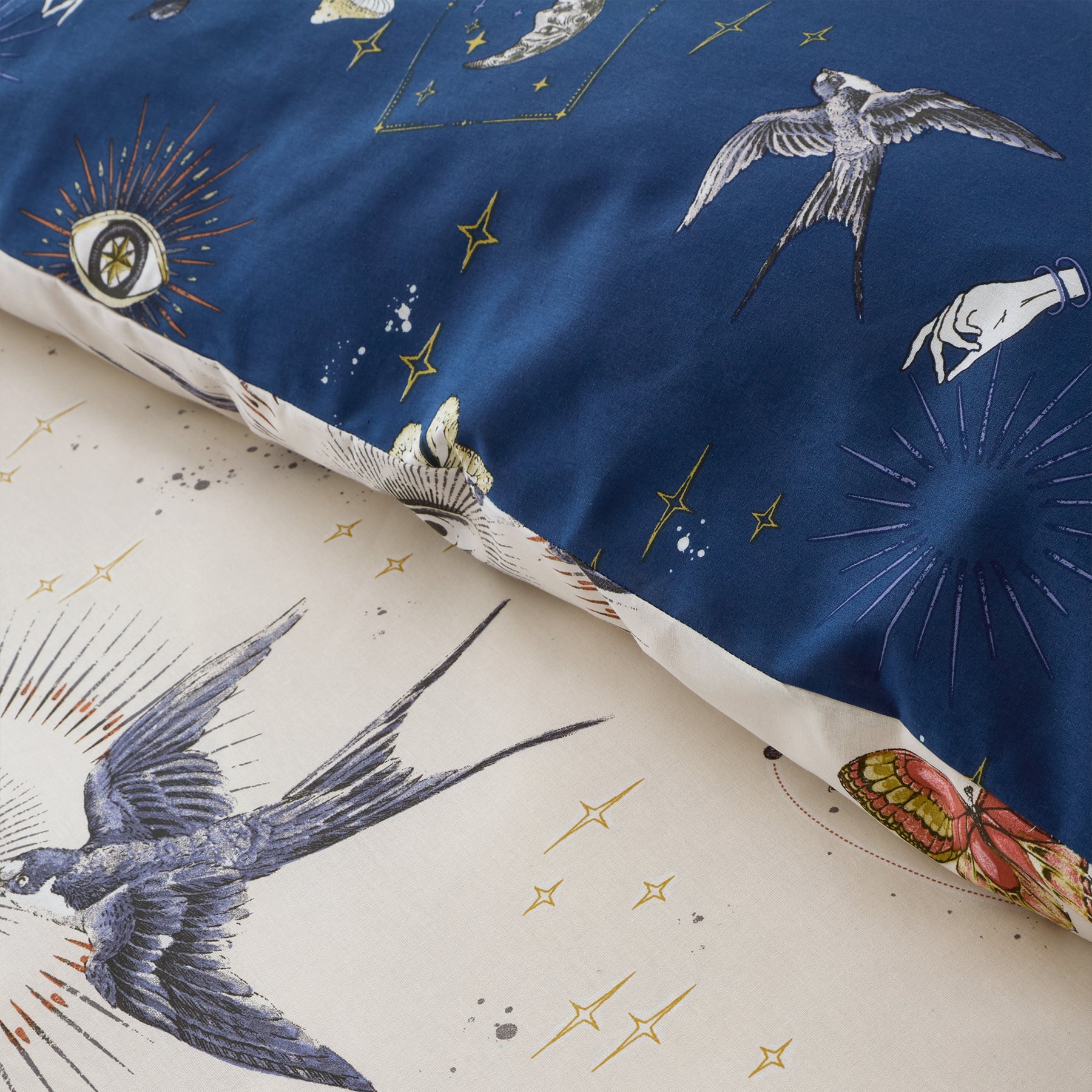 Add some magic to your room with this cosmic-themed bedding set. Fall asleep under the stars with moon, sun, and butterfly designs. The reversible cover allows for a change in mood, revealing a darker side of the universe. Made from soft and durable cotton, perfect for everyday use. From the expertly crafted Hella Sassy Homeware brand. Turn your bedroom into a perfect sanctuary, because life may not be perfect, but your bedroom can be. Don't forget to stay sassy!