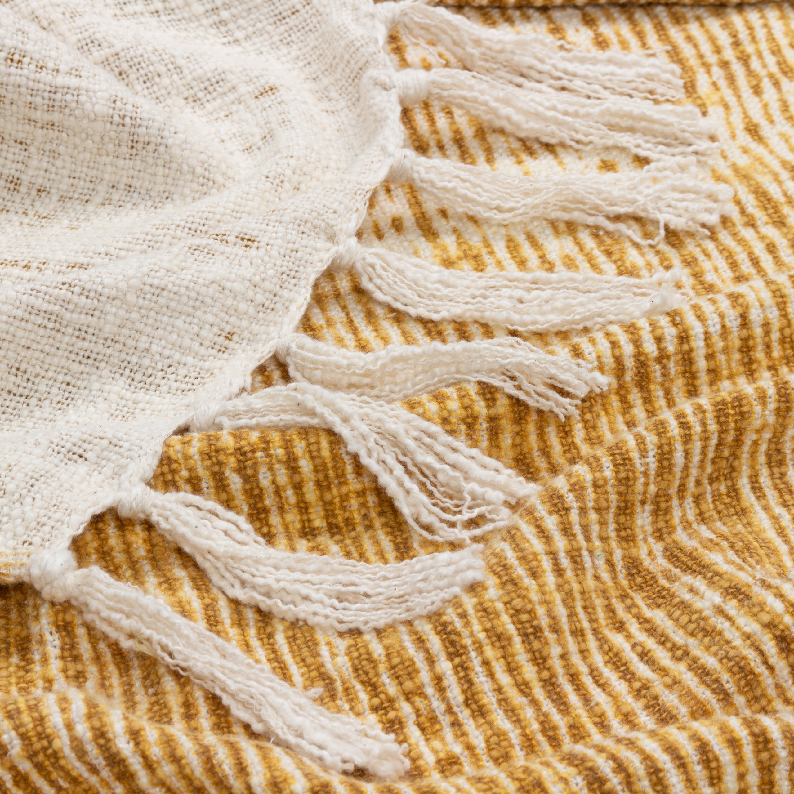 The abstract striped print of the Sono Ink blanket was inspired by earthy hues and textures. This throw is available in a variety of soft colours that will go with any home interior and has modest tassel trimming on both sides.
