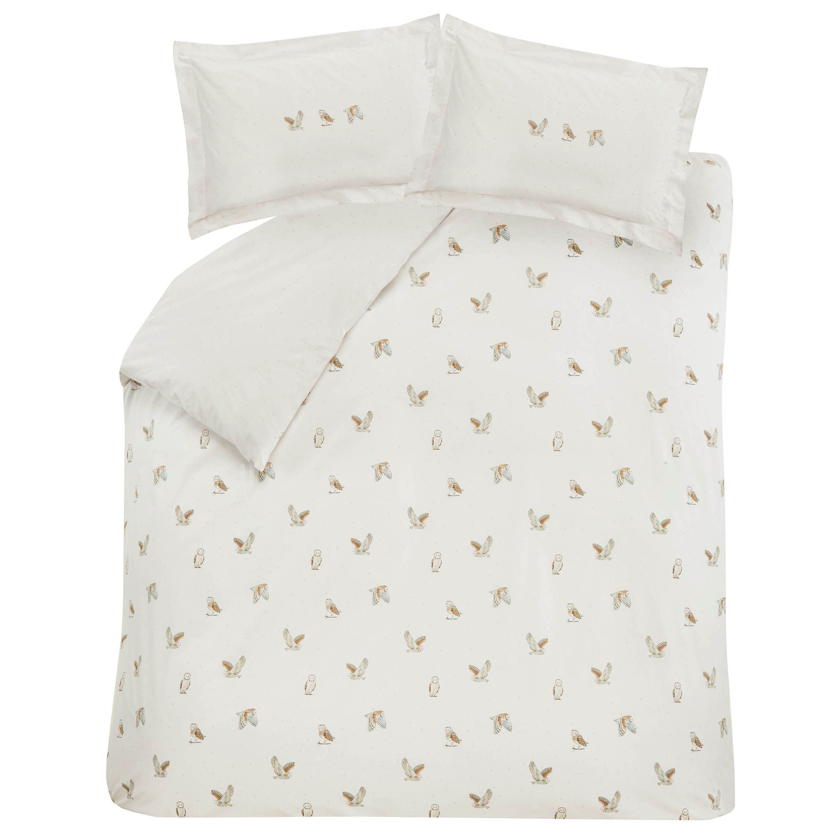 Enhance your bedroom with the seasonal elegance of the Snowy Owls Bedding Set, showcasing Sophie Allport’s detailed illustrations of elegant owls soaring over and resting on snowy branches. The crisp white background creates a peaceful and warm atmosphere, perfectly suited for winter. The reverse side features a snowy motif that adds to the tranquil, inviting feel of a winter sanctuary. Made from 100% cotton with a 200 thread count, it offers breathability and comfort. Available in single, double, king, and super king sizes, each set includes a duvet cover and two pillowcases (one pillowcase with the single set). Pillowcases can also be purchased separately in pairs.