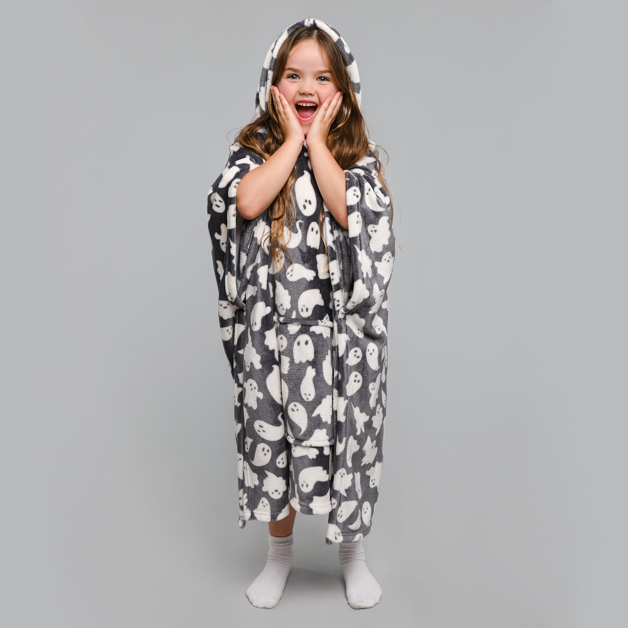 Spooky Ghosts 75cm x 92.5cm Poncho Grey