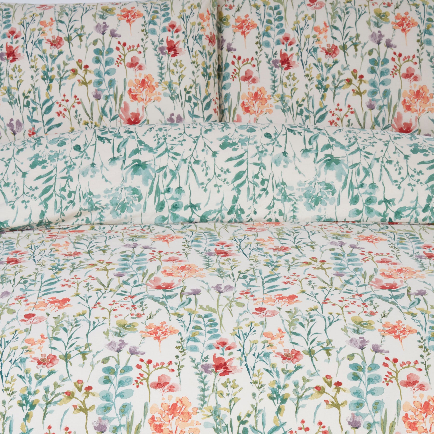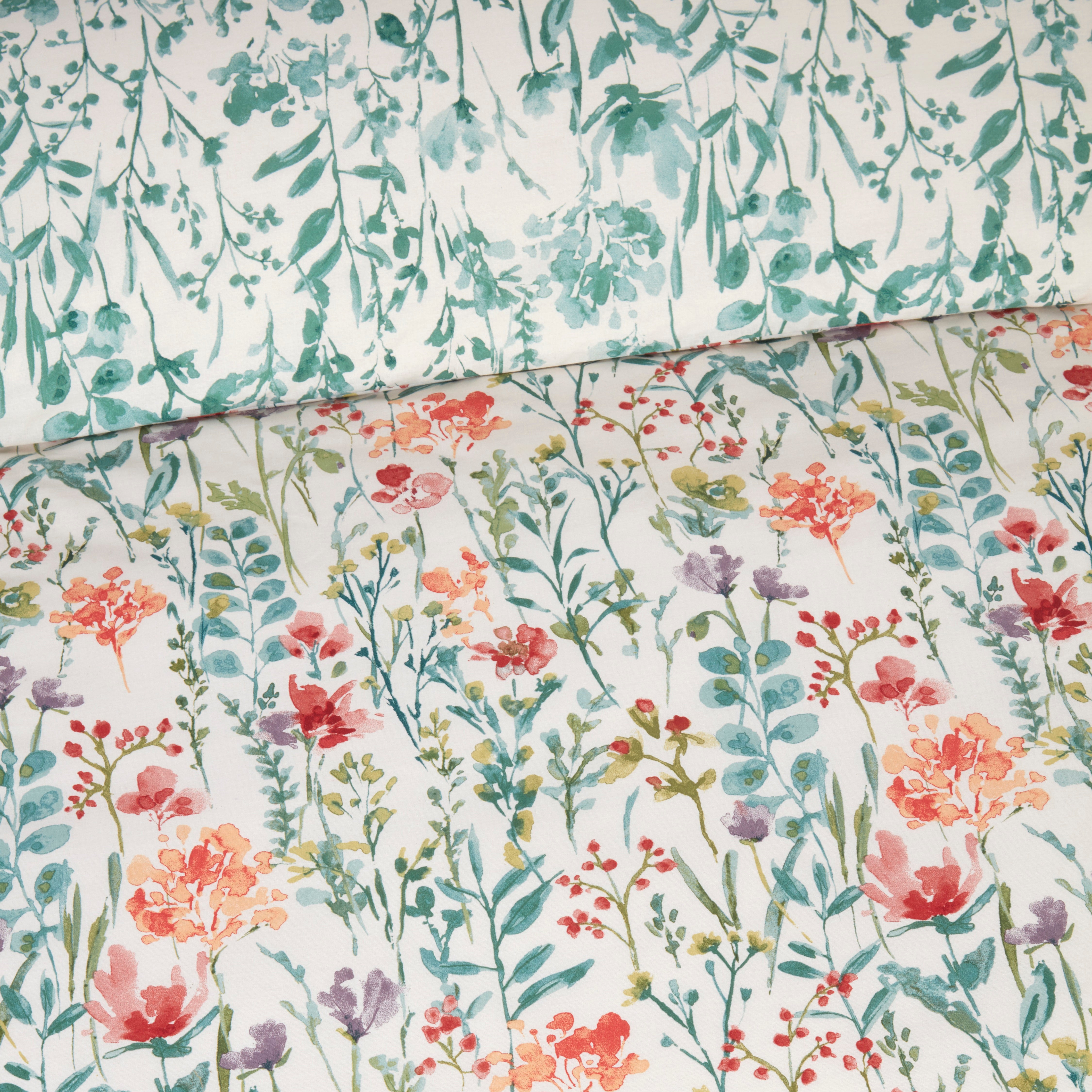 Discover the beauty of nature with our watercolour floral design featuring soft hues of pink and green, expertly printed on a cosy ivory background. Complement the set with coordinating accessories, such as curtains, coordinating tiebacks and cushions, and a reversible duvet cover with a clever leaf motif.