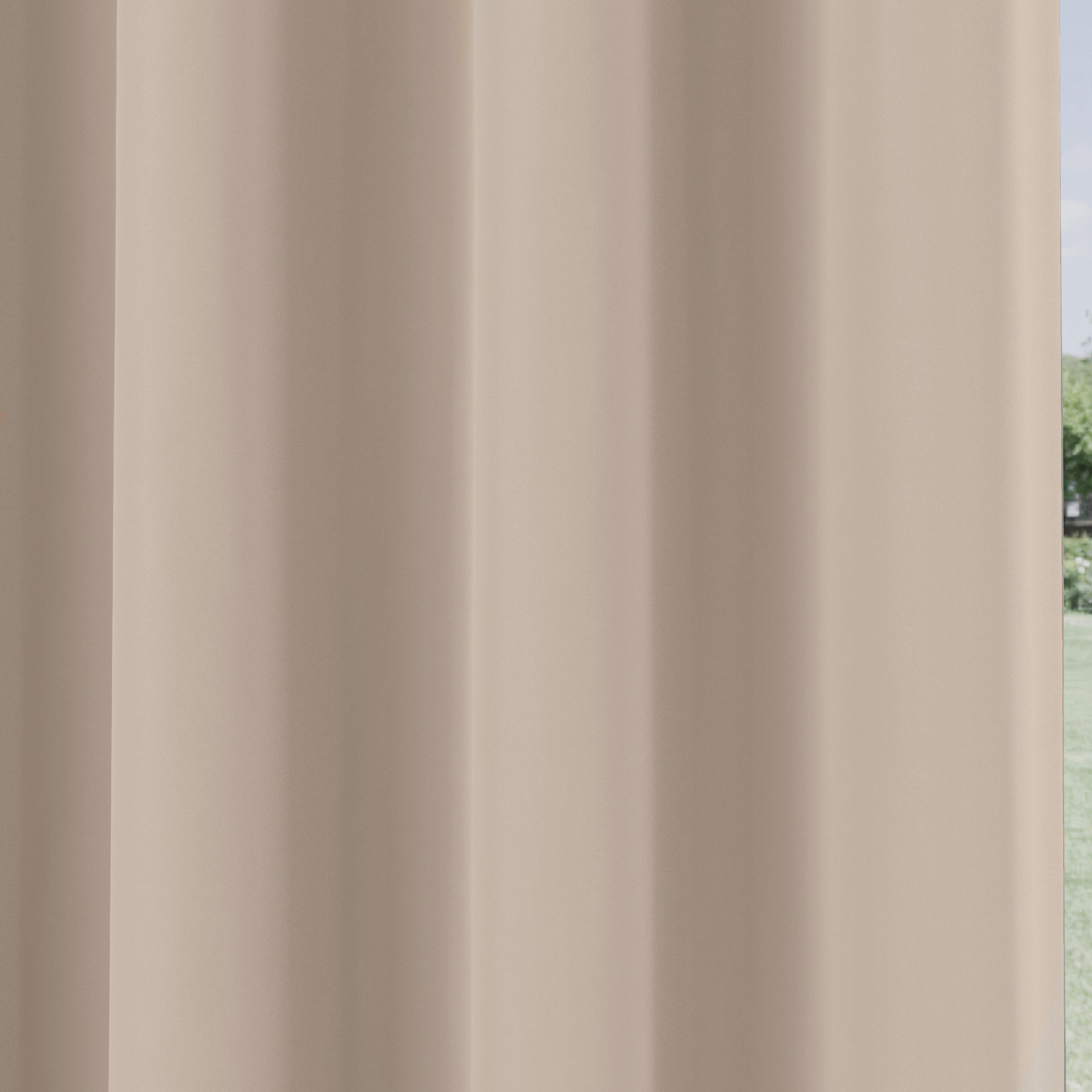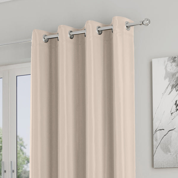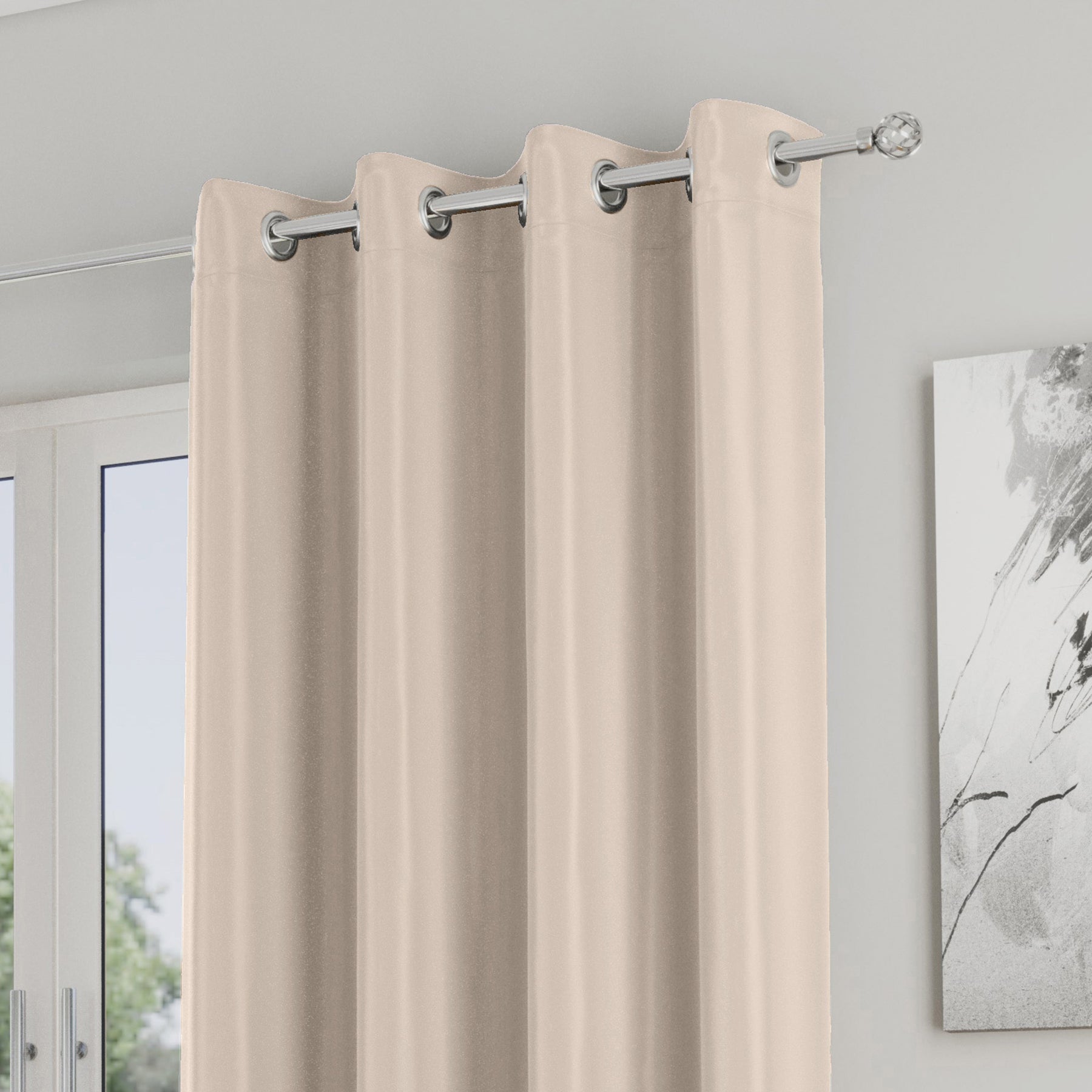 The pack includes a single plain supersoft curtain, ready to hang with an eyelet header that ensures effortless installation and operation. The silver eyelet rings feature a 4cm inner diameter. The innovative triple-weave technology incorporates three strategically interwoven layers, including a central black thread that enhances light-blocking and insulation properties. This sophisticated construction eliminates the need for additional lining while delivering a refined, elegant drape without excessive weight or bulk.