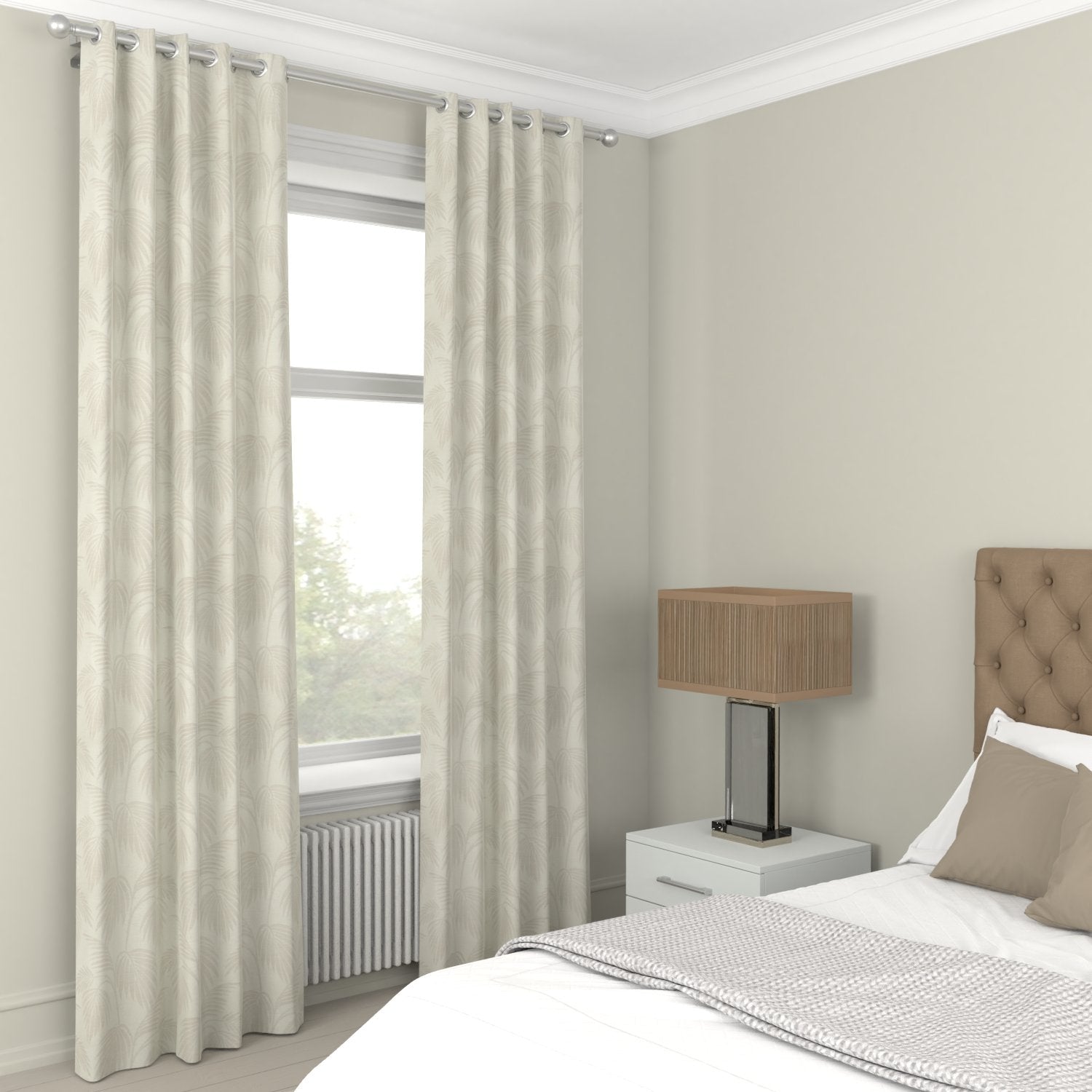 Eyelet Heading - Eyelet headings can only be used with curtain poles, and there is a choice of eyelet colours available to help you match the curtains to your room. Eyelet curtains take up very little room each side of the window, and this allows the maximum amount of light through your window. You also need slightly less fullness in eyelet curtains so they work very well for smaller windows. However, its best to avoid vertical striped patterns as they can look a little strange when opened.