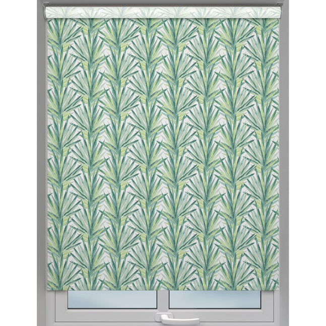 Create a brand new look in any room of the home with the Tropical leaf print made to order roller blind. This material has a dim out quality helping to reduce light from entering your room.