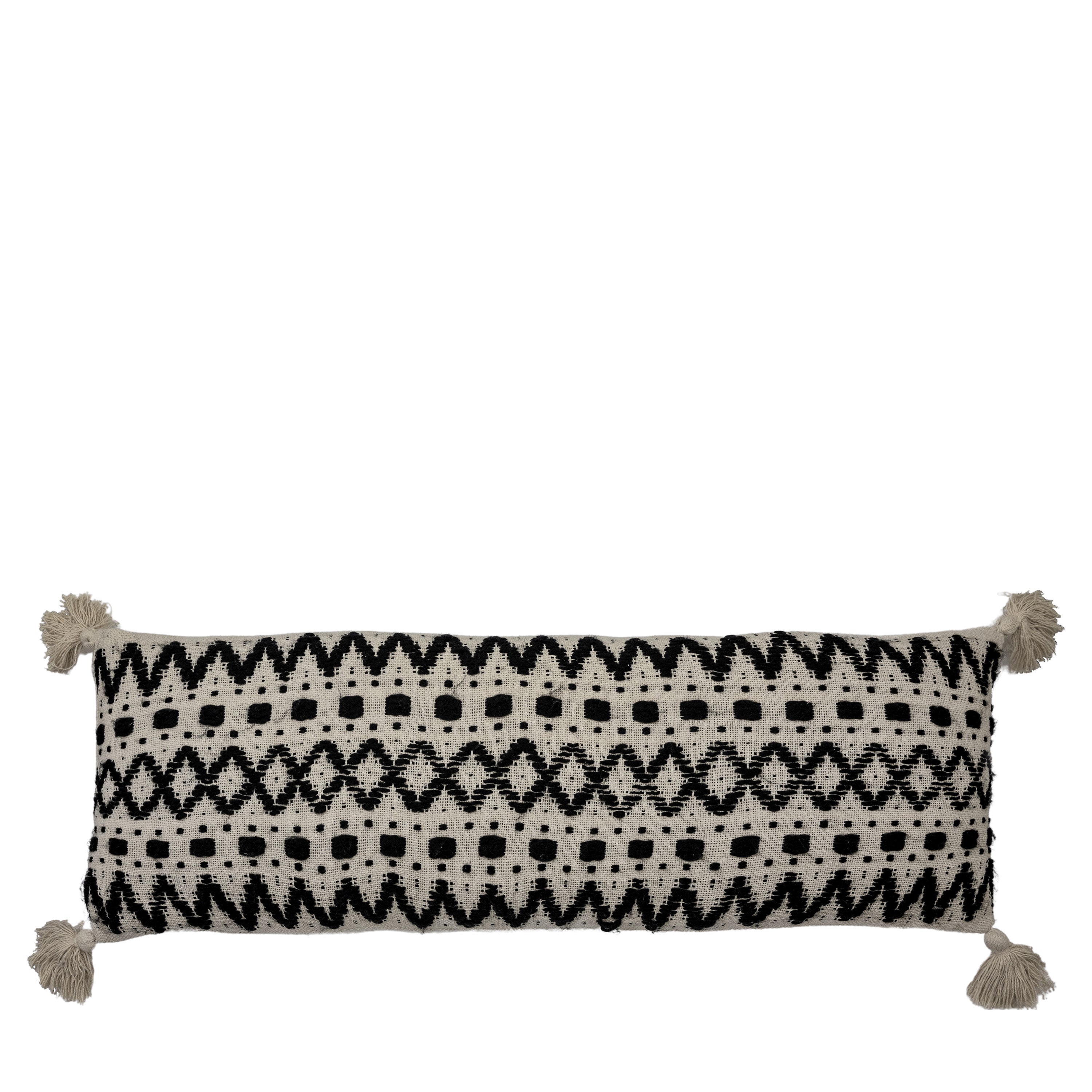 Utilising a blend of premium cotton, polyester, and acrylic materials, this filled boudoir cushion offers both comfort and style. Its sleek black stitchwork features an Aztec design, adding a modern touch of sophistication to any space. Measuring at 35cm x 90cm, it is the ideal choice for any room.