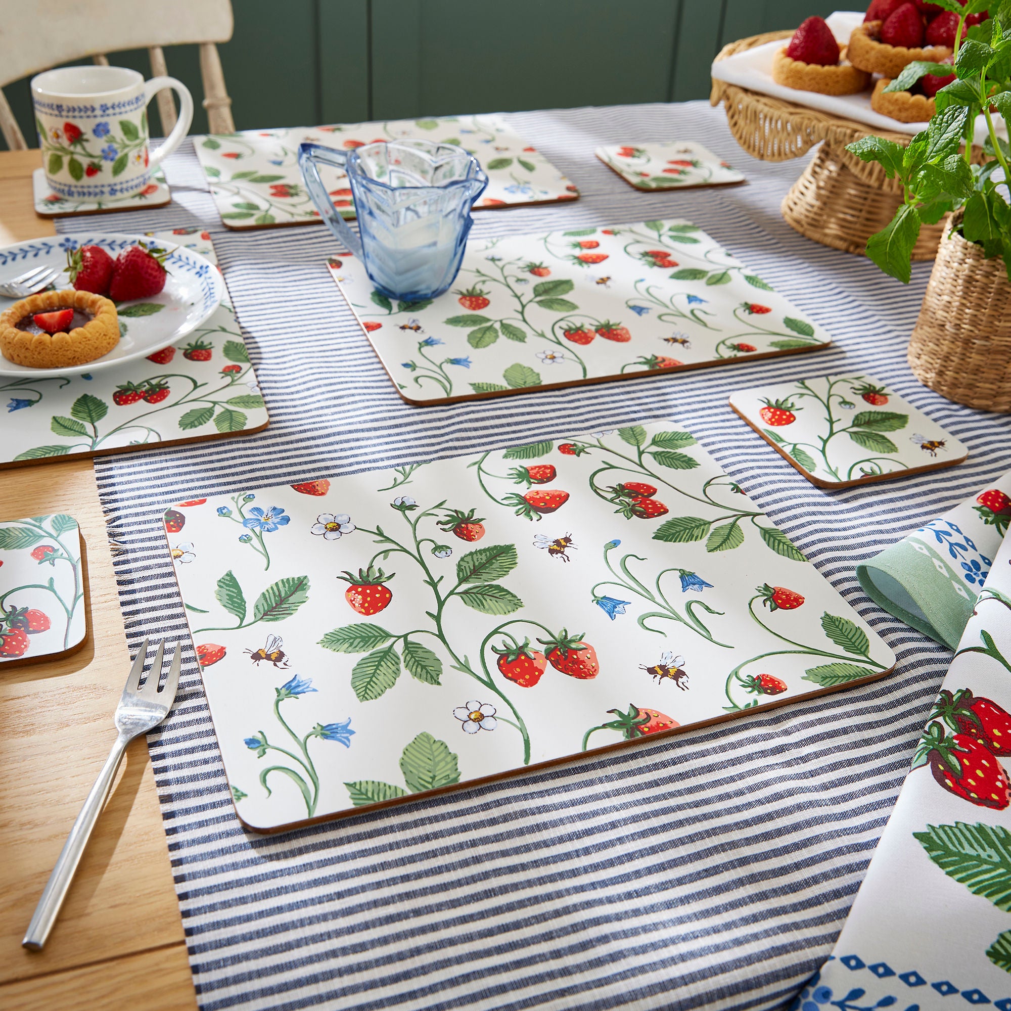 Discover the refined elegance of Ulster Weavers' Strawberry Patch placemats, a set of four that brings sophisticated design to your table. Each placemat features exclusive in-house artwork with a protective matte lacquer finish, ensuring both visual appeal and practical durability. Measuring 21 x 29 x 0.5cm, they're perfectly proportioned to frame your dinnerware whilst showcasing the brand's heritage of meticulous craftsmanship. These placemats represent a commitment to quality dining, combining aesthetic distinction with everyday functionality for those who value thoughtfully designed home accessories.
