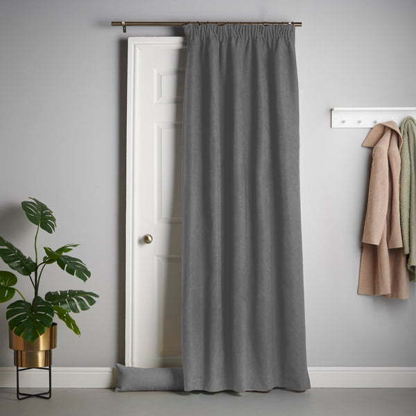 Luxuriate at home with this soft velvet chenille door curtain, insulated with fleece interlining and a poly cotton lining for a cosy atmosphere. Not only is it stylish, it also offers premium thermal, acoustic and blackout benefits, blocking draughts and dampening noise. Save energy with this economical solution while wrapping up in warmth all year round. Easily maintainable, it is machine washable and tumble dryable for your convenience.