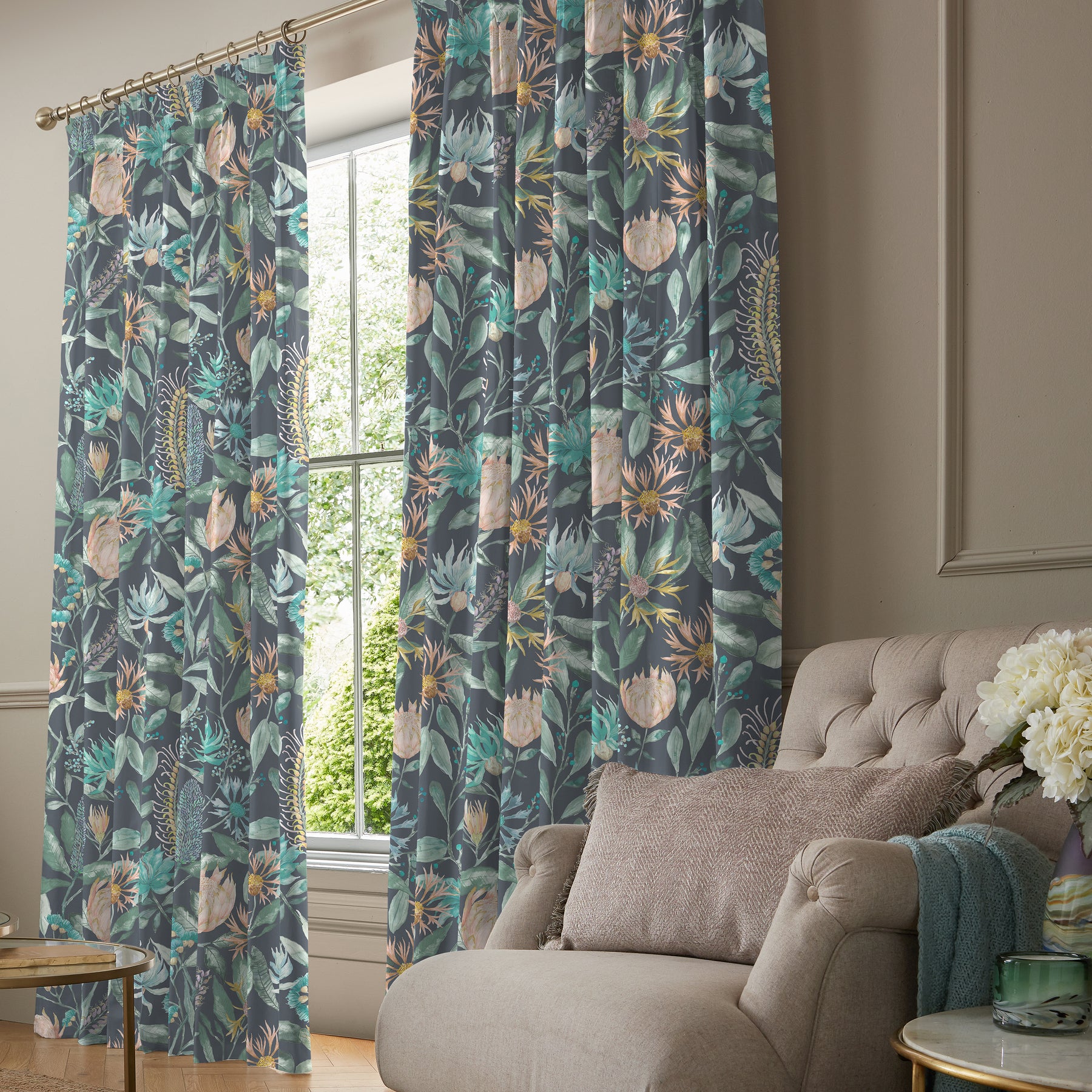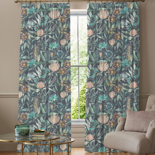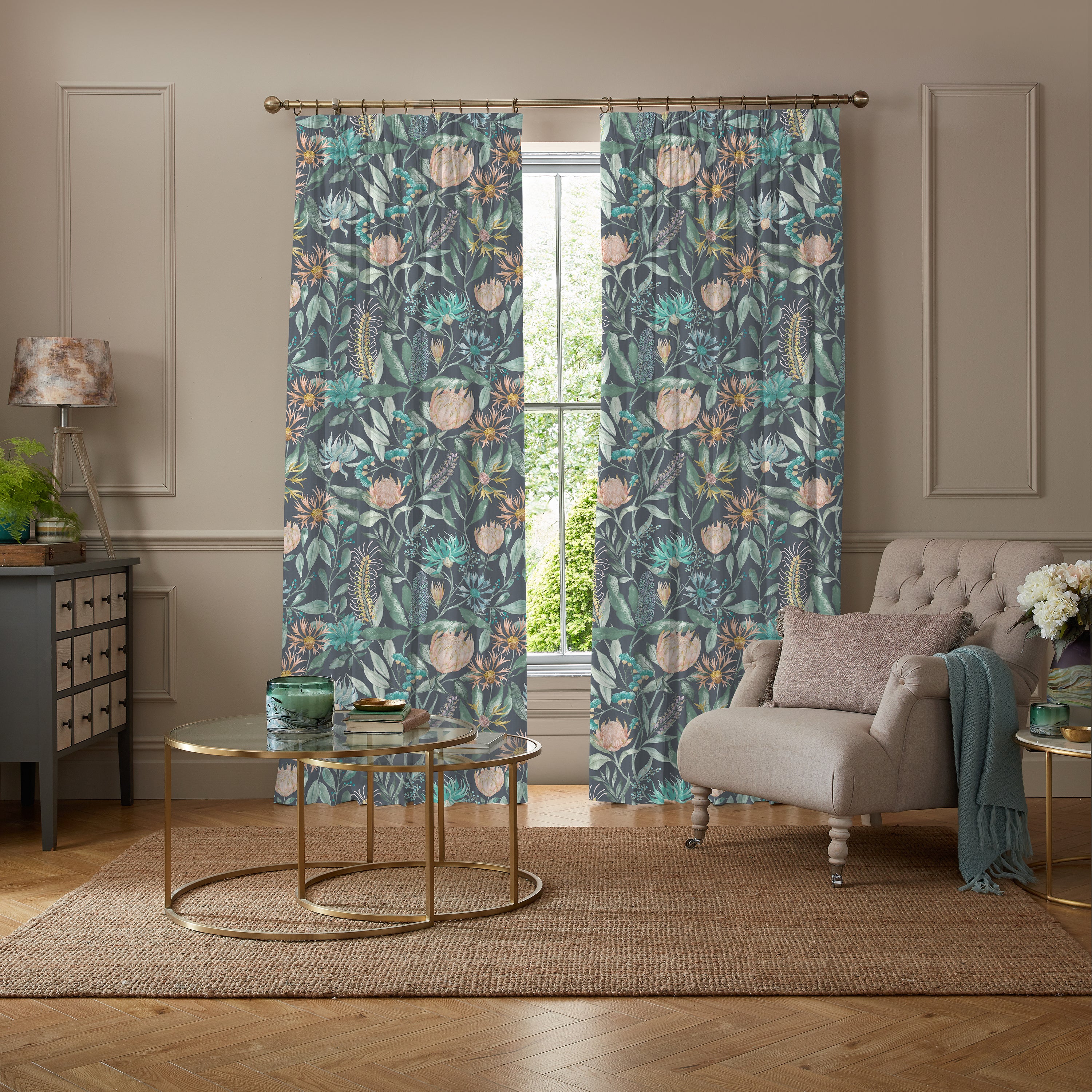 Make you selection from a vast range of made to measure fabrics from the wonderful Voyage collection. This beautiful range features floral prints in a plethora of styles and striking feel good colour combinations. This pair of made to order curtains come fully lined with your choice of heading and lining and can also be ordered as tiebacks, cushions and as a made to order blind option. This fabric has a composition of cotton and linen.