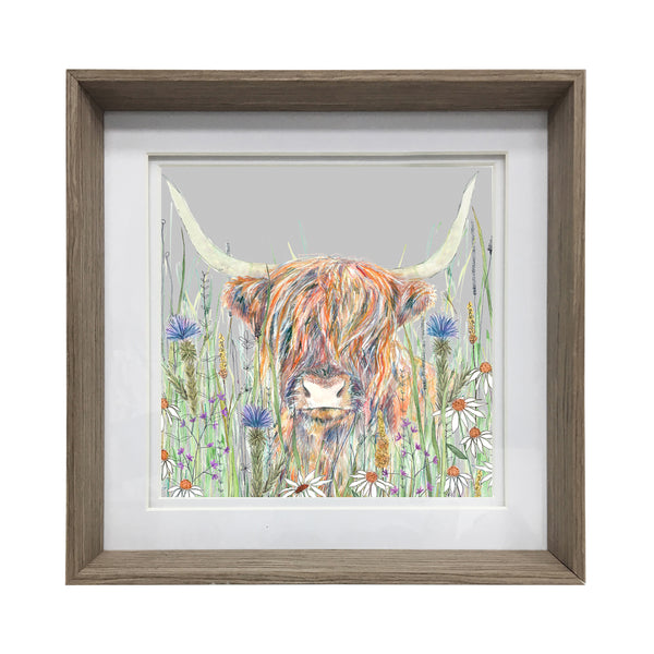 Introducing the Alfie Framed Print, an exquisite addition to the Voyage Maison Florabunda range. Printed on top-quality viscose paper, it presents a delightful highland cow in a kaleidoscope of purple, blush and golden florets set against lush green foliage. Housed in a sleek wooden frame, the artwork is mounted on natural linen, bringing effortless beauty and elegance to any wall. Crafted and framed in Scotland, the piece radiates true craftsmanship and charm.