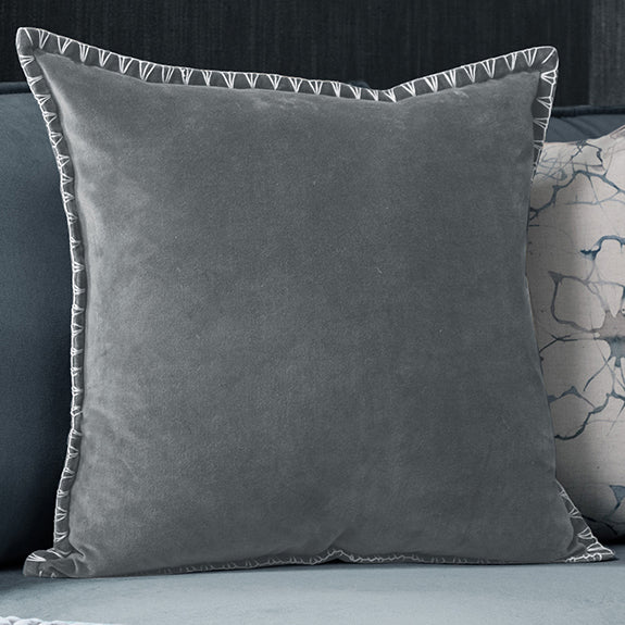 Voyage Maison Stitch Embroidered Velvet Feather Filled Cushion 50cm x 50cm Steel