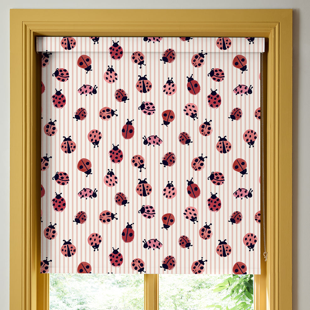 This custom-fit blackout roller blind is crafted from 100% polyester. The Little Ladybirds design, inspired by the joy of discovering small ladybirds in the garden, features a hand-painted pattern that adds a charming, whimsical, and natural element to any interior space.