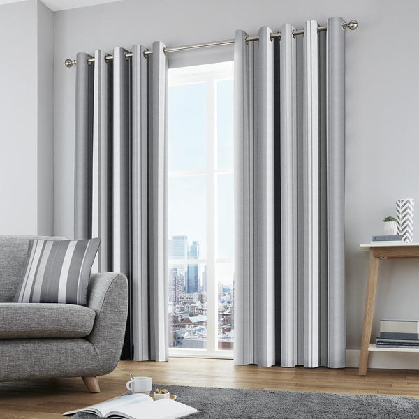 These ready-made lined eyelet curtains showcase an elegant vertical stripe design that effortlessly coordinates with diverse interior schemes. Crafted from 100% cotton face fabric with a 52% polyester, 48% cotton lining, they deliver both durability and refined aesthetics. The contemporary eyelet heading system ensures smooth operation and a sophisticated drape, making them an ideal choice for those seeking quality window dressing that combines practicality with contemporary style.
