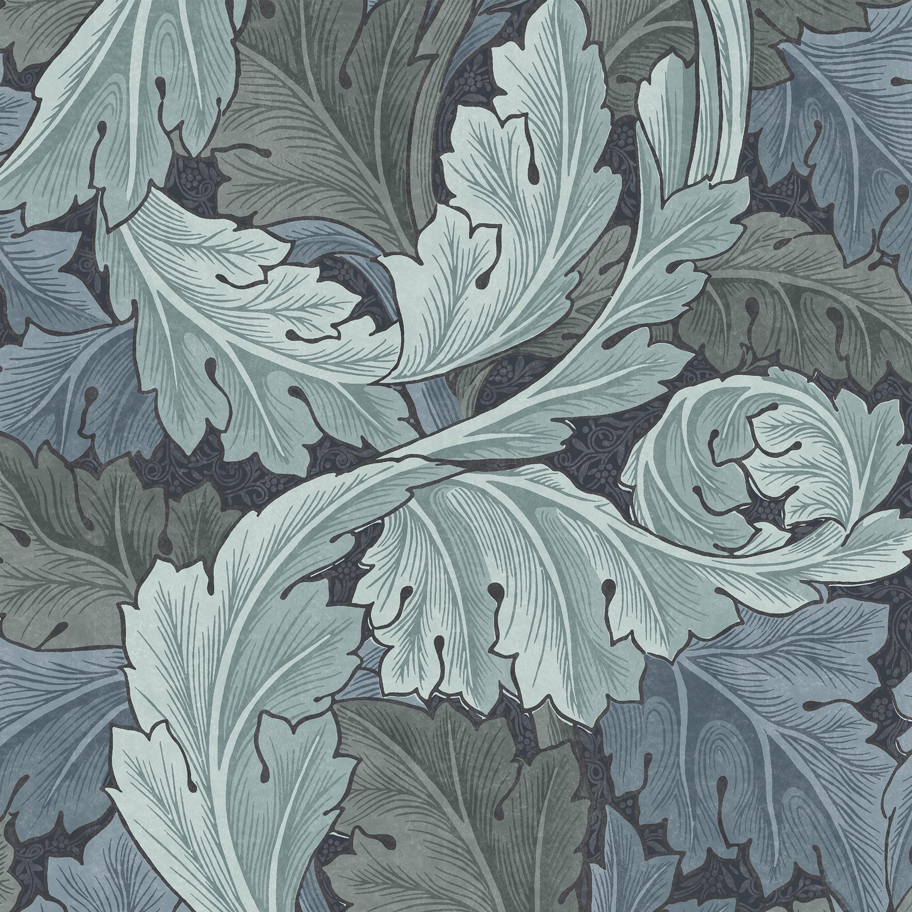 Acanthus leaves decorate many of Morris’ designs and take on a central role in his Acanthus pattern for wallpaper. The classic motif is perfect for repeating patterns, and Morris held the belief that larger-scale designs were especially fitting for smaller rooms, as they could create a more tranquil atmosphere compared to denser, smaller patterns. The use of soft tonal shades further enhances the design, infusing it with a sense of gentle movement.