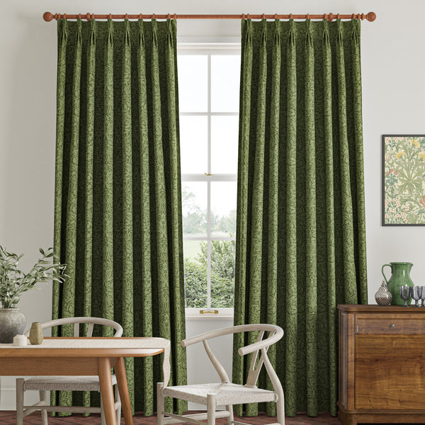 Crafted from 100% polyester, these William Morris Acorn Velvet made-to-measure curtains in the rich Moss shade combine timeless design with practical durability. The luxurious velvet texture enhances any room with a sophisticated, tactile depth, while the bespoke sizing ensures a perfect fit tailored to your windows. Part of the iconic William Morris collection, these curtains bring classic artistry and quality craftsmanship to your home, offering both style and functionality that stand the test of time. Ideal for adding warmth and elegance to your living space.