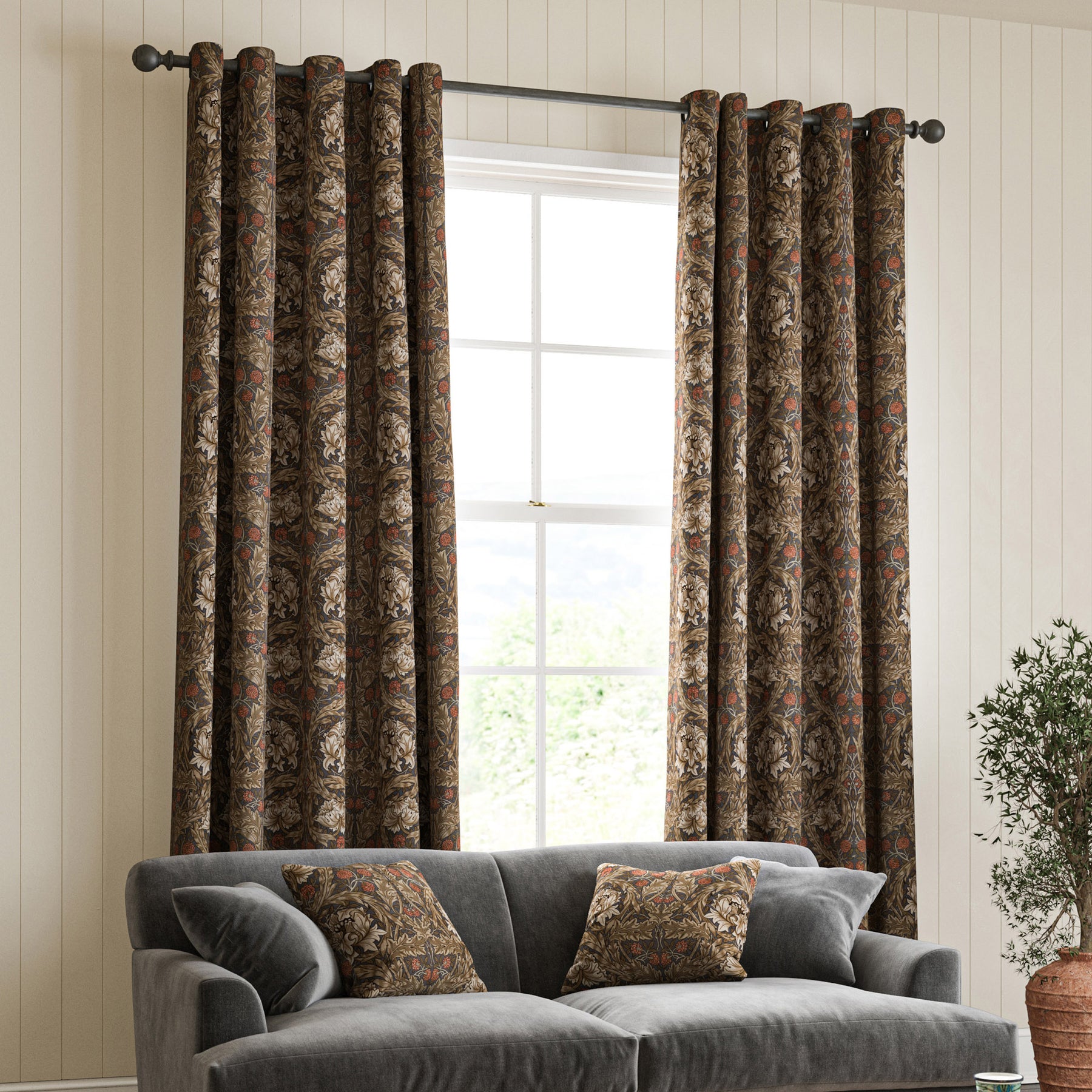 Eyelet Heading - Eyelet headings can only be used with curtain poles, and there is a choice of eyelet colours available to help you match the curtains to your room. Eyelet curtains take up very little room each side of the window, and this allows the maximum amount of light through your window. You also need slightly less fullness in eyelet curtains so they work very well for smaller windows. However, its best to avoid vertical striped patterns as they can look a little strange when opened.