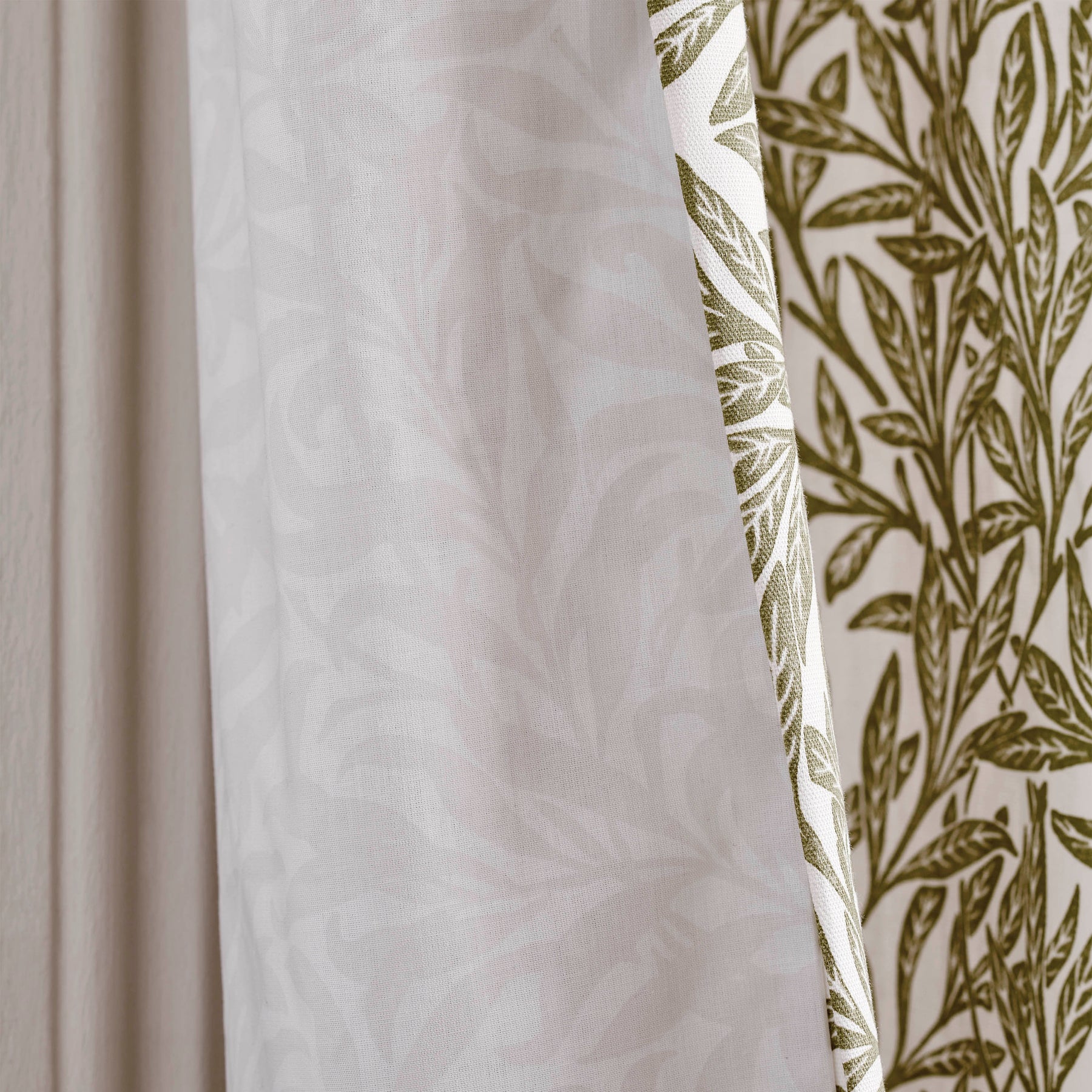 The design features entwined willow leaves rising in a graceful, flowing pattern, adorning this 100% cotton pencil pleat curtain. Presented in a deep olive-green hue and complemented by a beautifully printed lining, it brings a tranquil, nature-inspired atmosphere to any room. Created by William Morris in 1874 as a hand-block printed wallpaper, the Willow pattern retains its timeless elegance. The lining is crafted from a 50% cotton, 50% polyester blend.