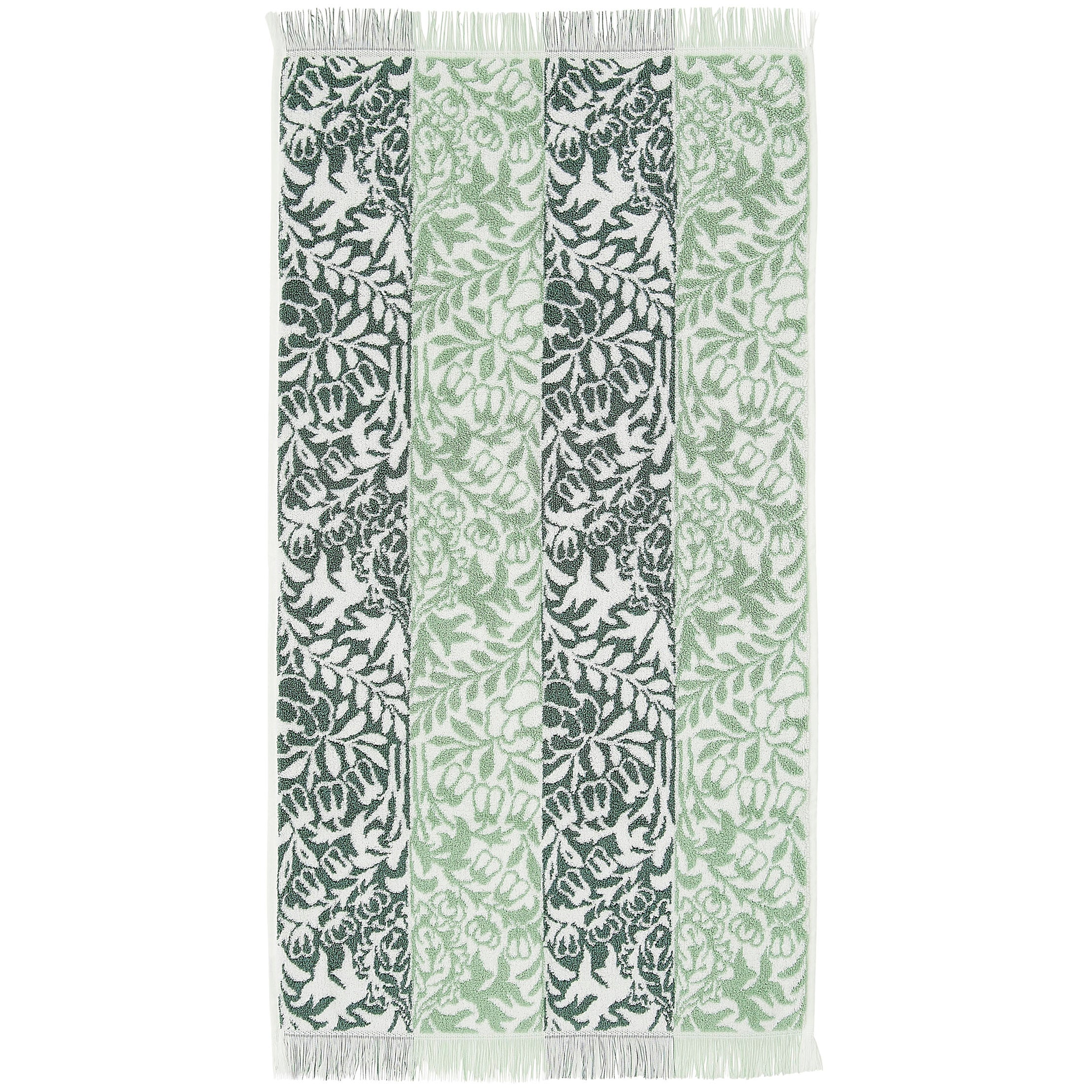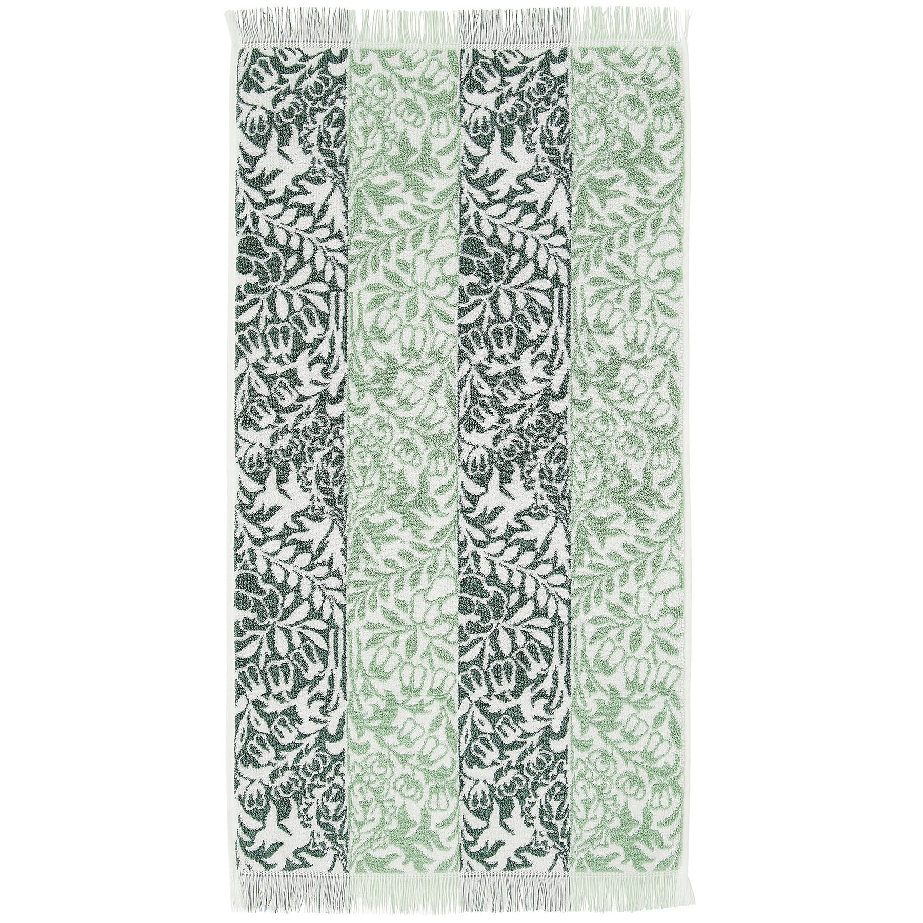 An original drawing created by William Morris for Wilton Carpets and registered in 1876 has been translated into these beautiful 100% cotton towels. The original artwork features a symmetrical application of a rose surrounded by foxgloves. This design, held in the William Morris Gallery archive, was faithfully interpreted into a repeating stripe pattern by the William Morris At Home design team, capturing the authentic essence of the artwork in a unique form, woven in soft sage green yarns and finished with a decorative fringed edging, these towels are perfect for bringing the beauty of nature into your bathroom. Towels 580gsm. Bath mat 950gsm