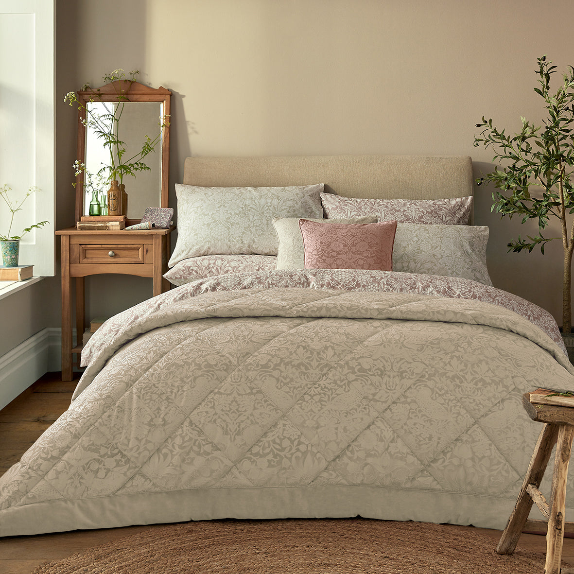 William Morris At Home Strawberry Thief Embossed 235cm x 235cm Bedspread Set Oyster
