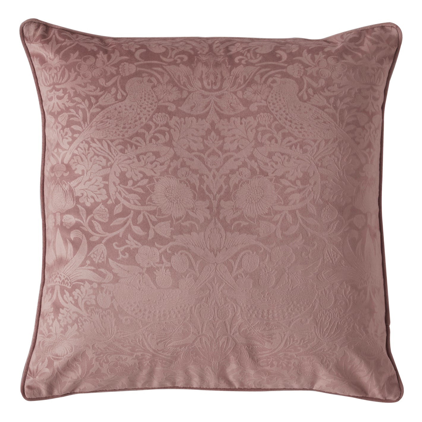 William Morris At Home Strawberry Thief Velvet Embossed 50cm x 50cm Filled Cushion Tea Rose