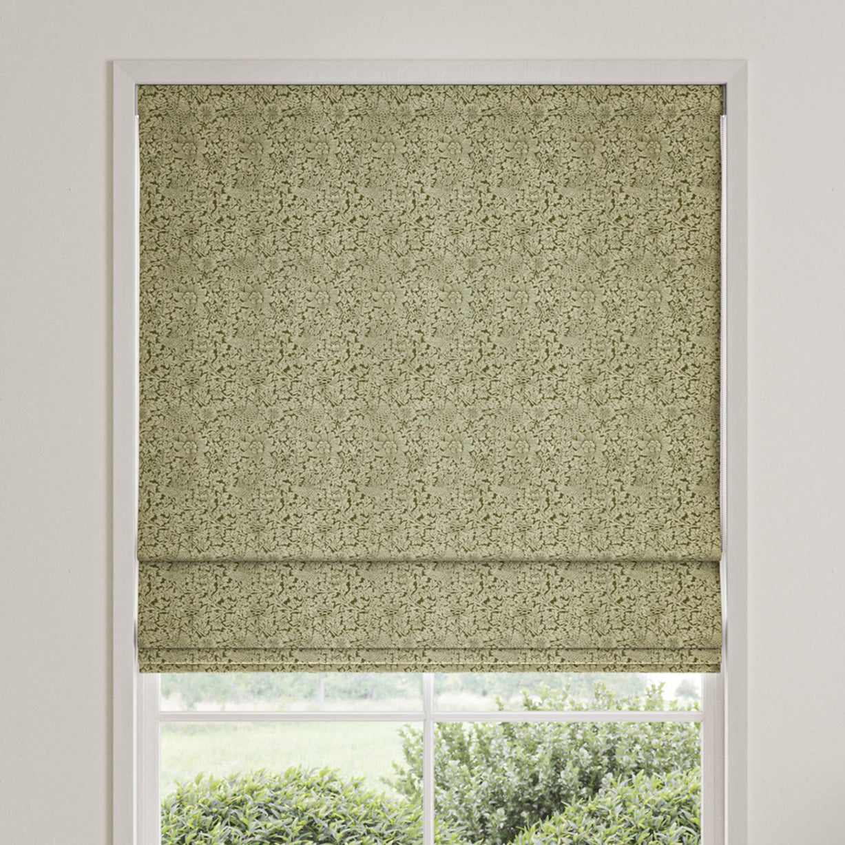 The William Morris Bird and Anemone Woven Made to Measure Roman Blind in Moss offers a sophisticated window dressing crafted from a premium blend of 42% polyester, 42% viscose, and 16% cotton. This composition ensures durability, a soft texture, and excellent drape, making it ideal for Roman blinds. The fabric features the iconic William Morris design, combining intricate bird and anemone motifs that bring timeless elegance and a touch of nature into your interior. Custom-made to your exact measurements, this blind provides a perfect fit and enhances any room with its rich texture and classic style.