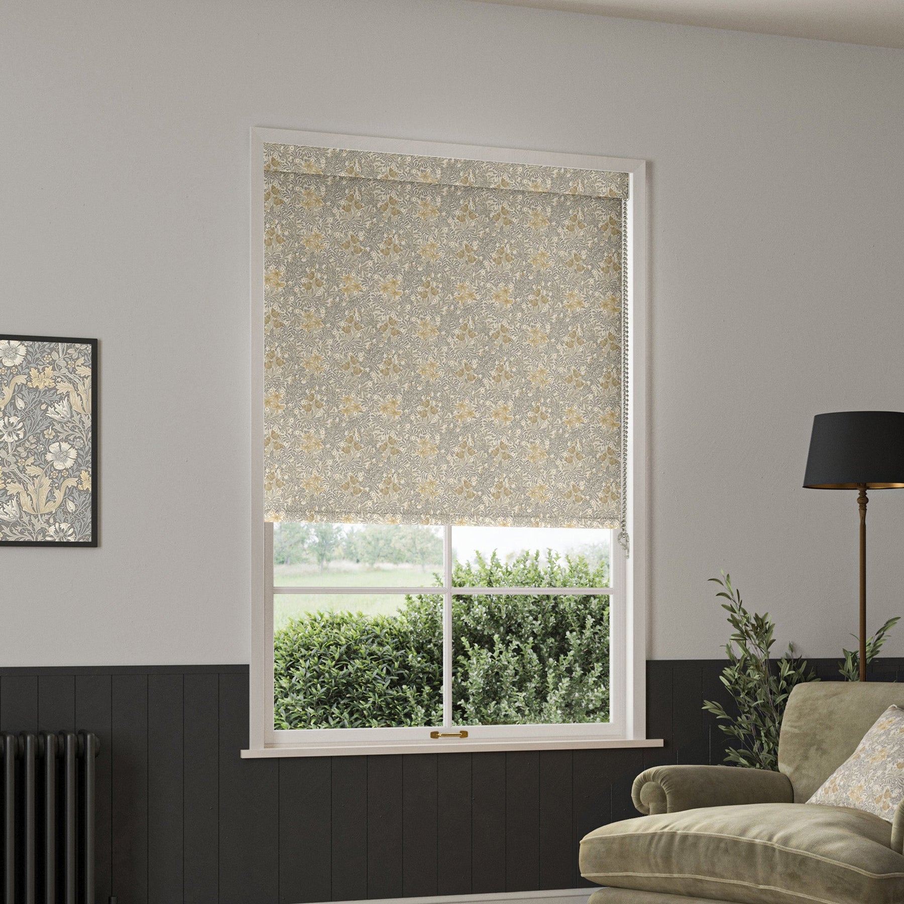 The William Morris Bower Translucent Made to Measure Roller Blind in Barley provides an elegant window treatment from the esteemed William Morris range. Made from 100% polyester, this translucent blind softly diffuses natural light, fostering a warm and welcoming environment while preserving privacy. Unlike blackout options, it permits daylight to enter, enriching the room’s ambiance without causing glare. Perfect for living areas where both light management and aesthetic appeal are essential.