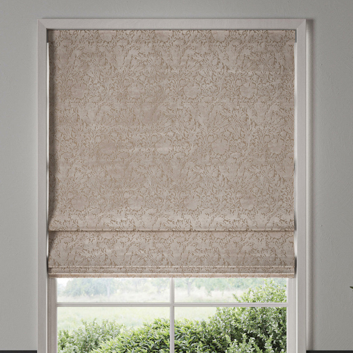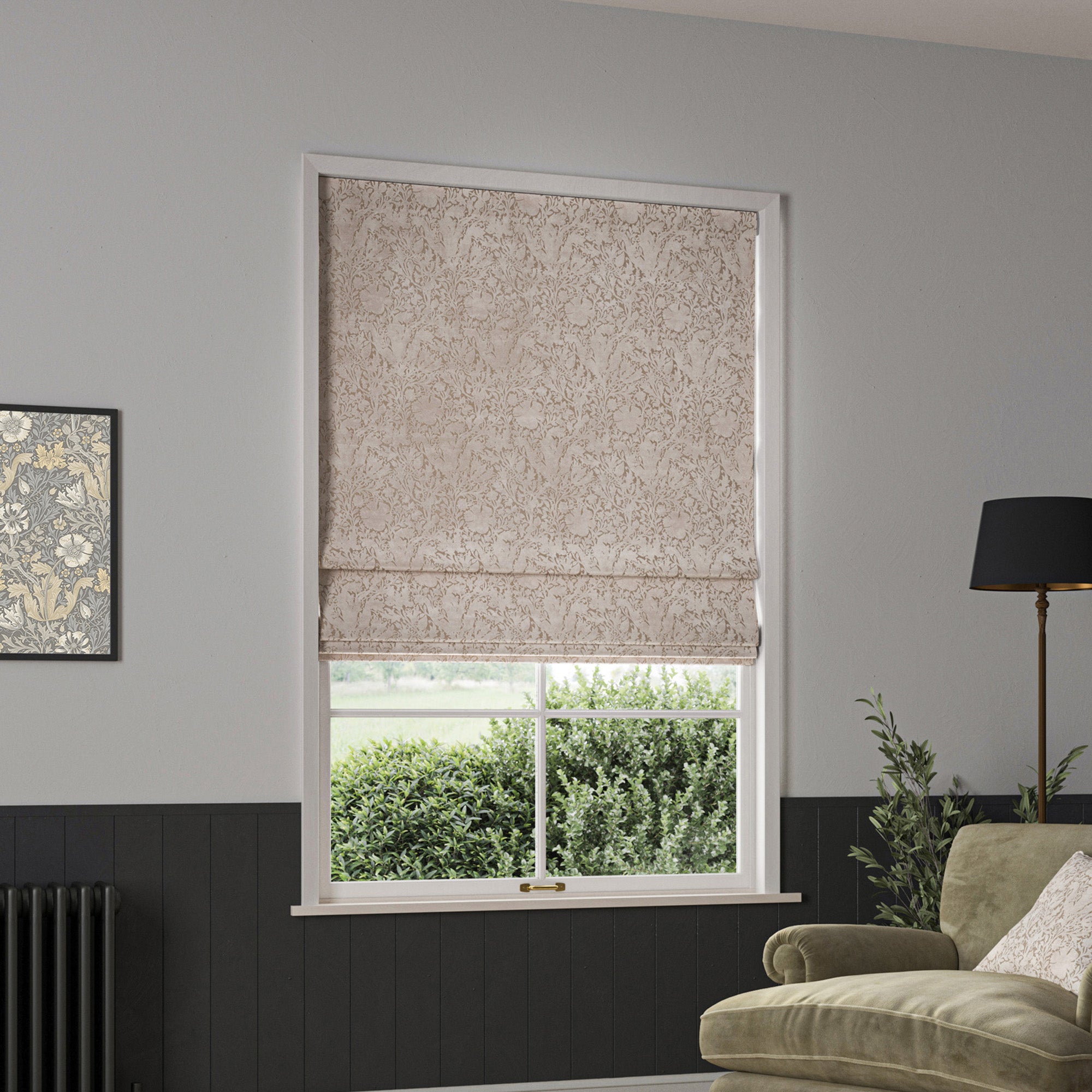 The William Morris Compton Silhouette Velvet Made to Measure Roman Blind in Cloud offers a refined window dressing solution crafted from 100% polyester velvet. Part of the esteemed William Morris collection, this blind combines classic design with luxurious texture, providing both elegance and durability. Its tailored fit ensures a perfect silhouette, enhancing any room with subtle sophistication while effectively controlling light and privacy. Ideal for those seeking a timeless aesthetic paired with practical functionality, this Roman blind brings a touch of heritage style to contemporary interiors.