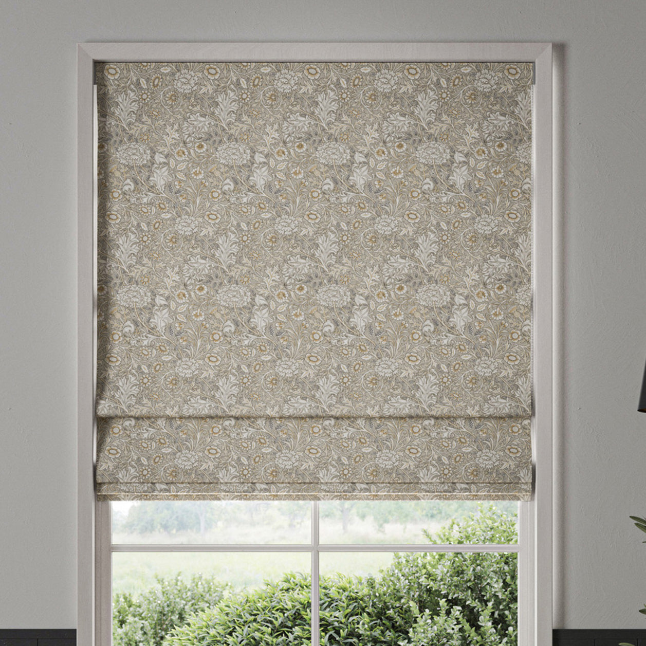 The William Morris Double Bough Made To Measure Roman Blind in Barley offers a timeless design crafted from 100% cotton, ensuring both durability and a natural feel. This fabric, part of the renowned William Morris collection, features intricate botanical patterns that bring classic elegance to any room. Custom-made to your exact measurements, this Roman blind provides a perfect fit and smooth operation, enhancing your window dressing with style and functionality. Its neutral Barley shade complements a variety of interiors, making it an ideal choice for those seeking quality and sophistication in their home décor.