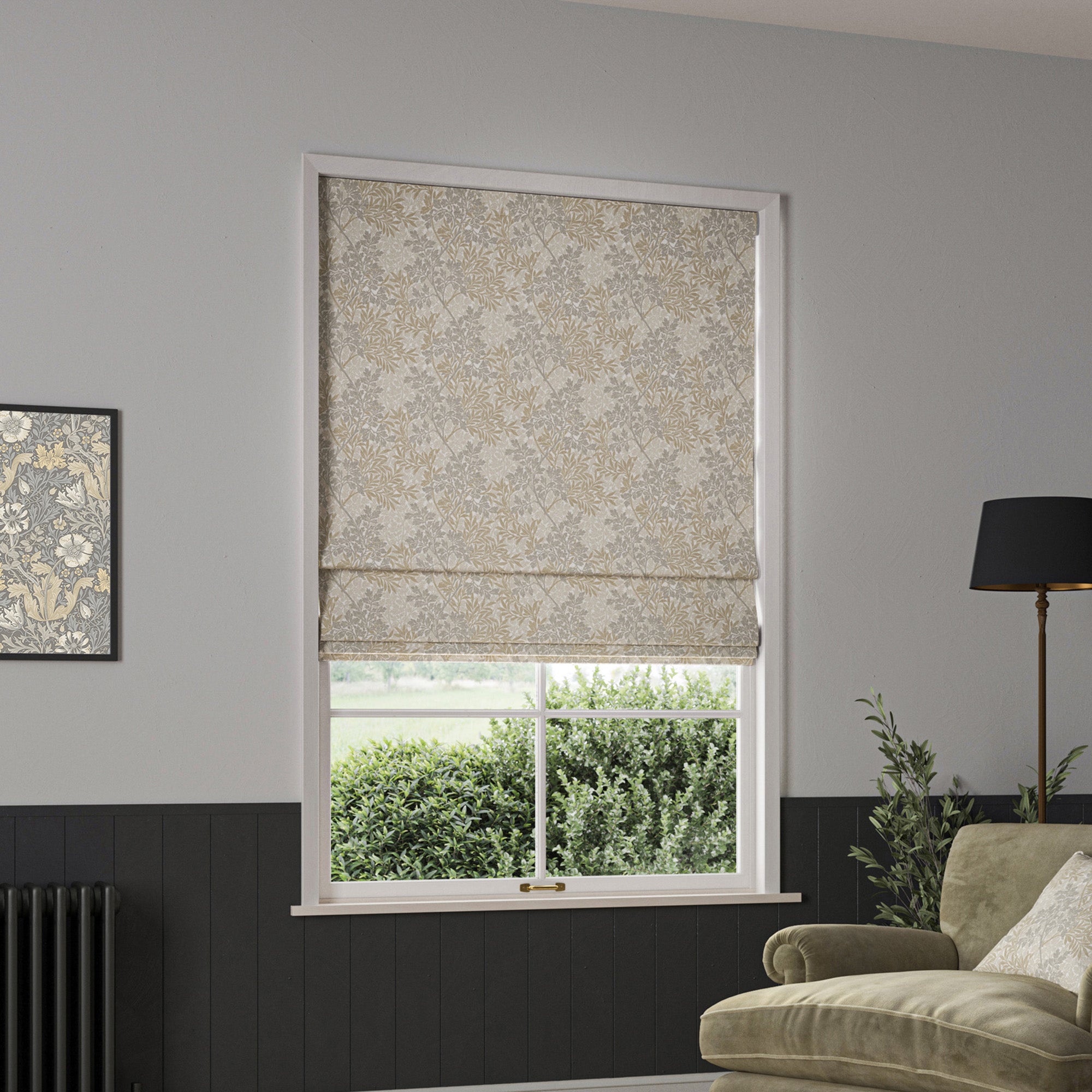 The William Morris Foliage Made To Measure Roman Blind in Barley offers a timeless design crafted from 100% cotton, ensuring both durability and a natural texture. This fabric, part of the renowned William Morris collection, features intricate foliage patterns that bring a classic yet elegant touch to any interior. Custom-made to your exact measurements, this Roman blind provides a perfect fit and smooth operation, enhancing your window dressing with style and functionality. Ideal for those seeking quality craftsmanship combined with iconic design heritage.