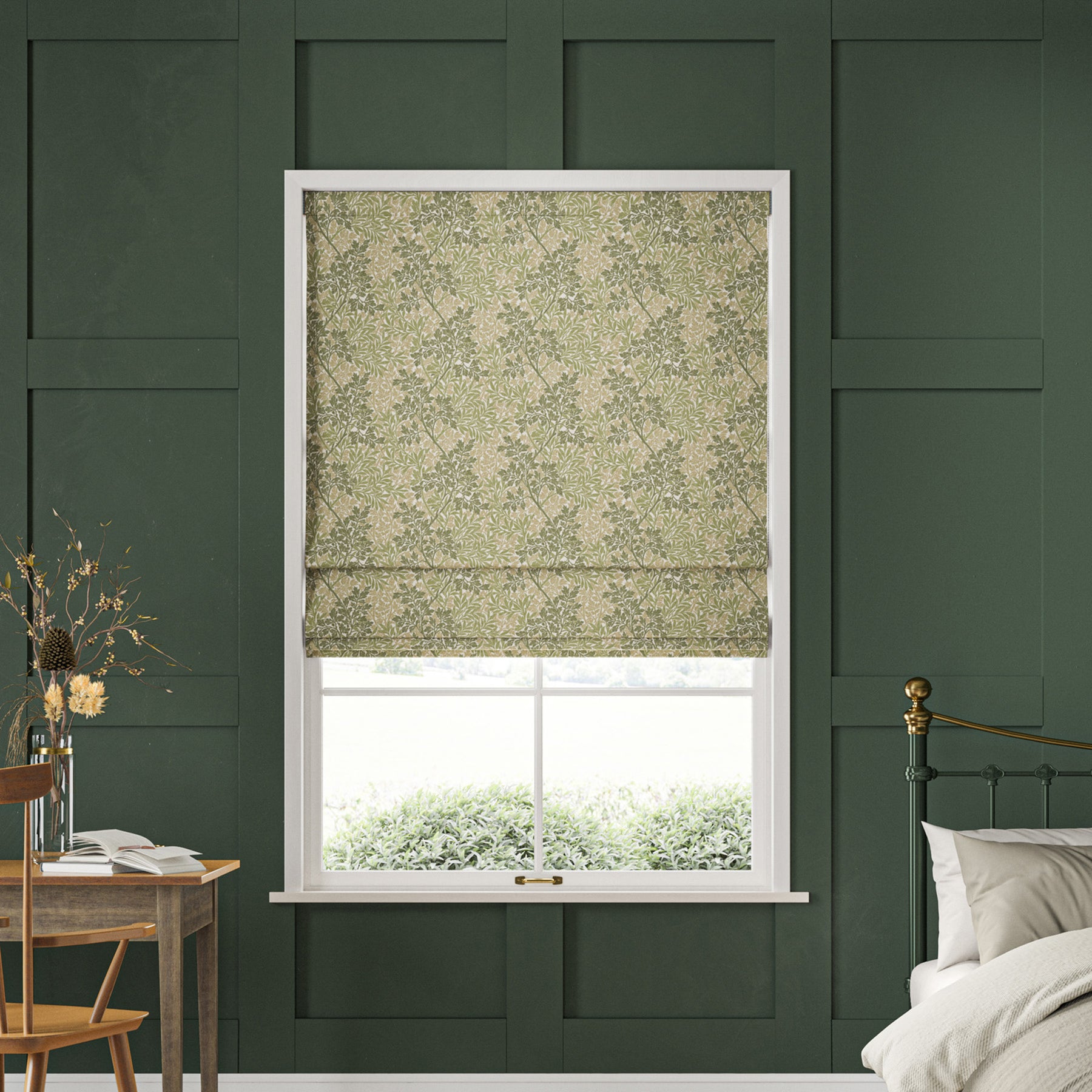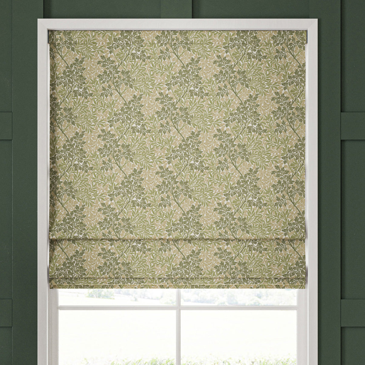 The William Morris Foliage Made To Measure Roman Blind in the Fern shade offers a timeless design crafted from 100% cotton, ensuring both durability and a natural feel. This blind is tailored to your exact measurements, providing a perfect fit for your windows while showcasing the iconic William Morris foliage pattern. Ideal for adding a touch of classic elegance and subtle texture to any room, it combines traditional artistry with practical functionality. The breathable cotton fabric allows for gentle light diffusion, creating a warm and inviting atmosphere in your living space.