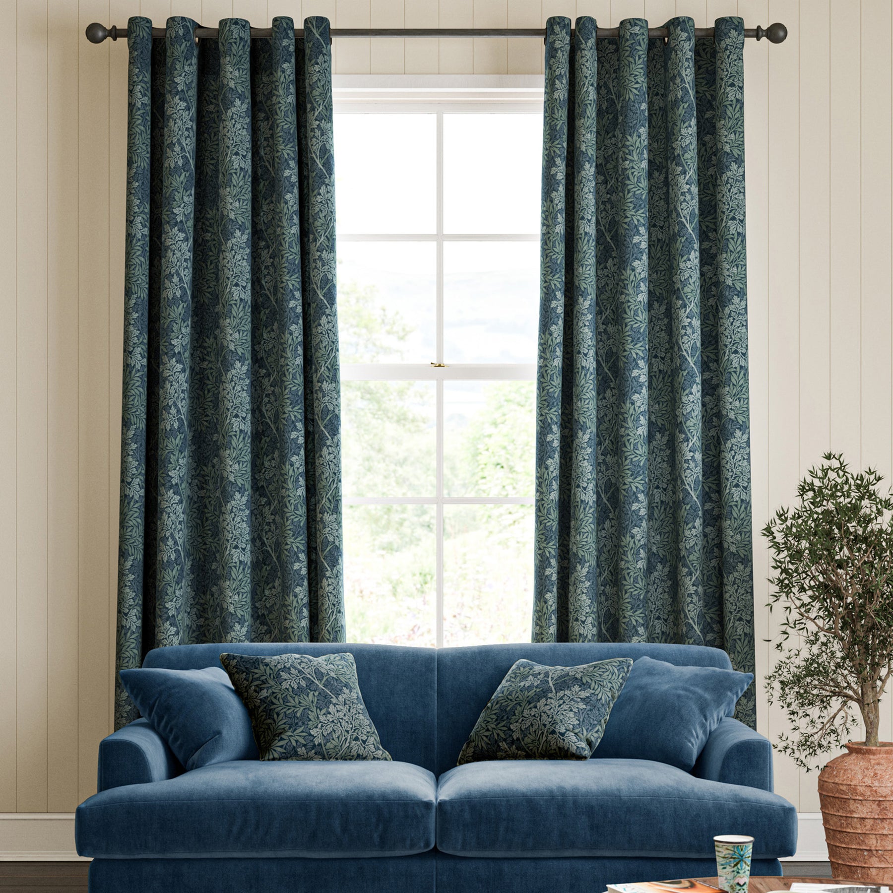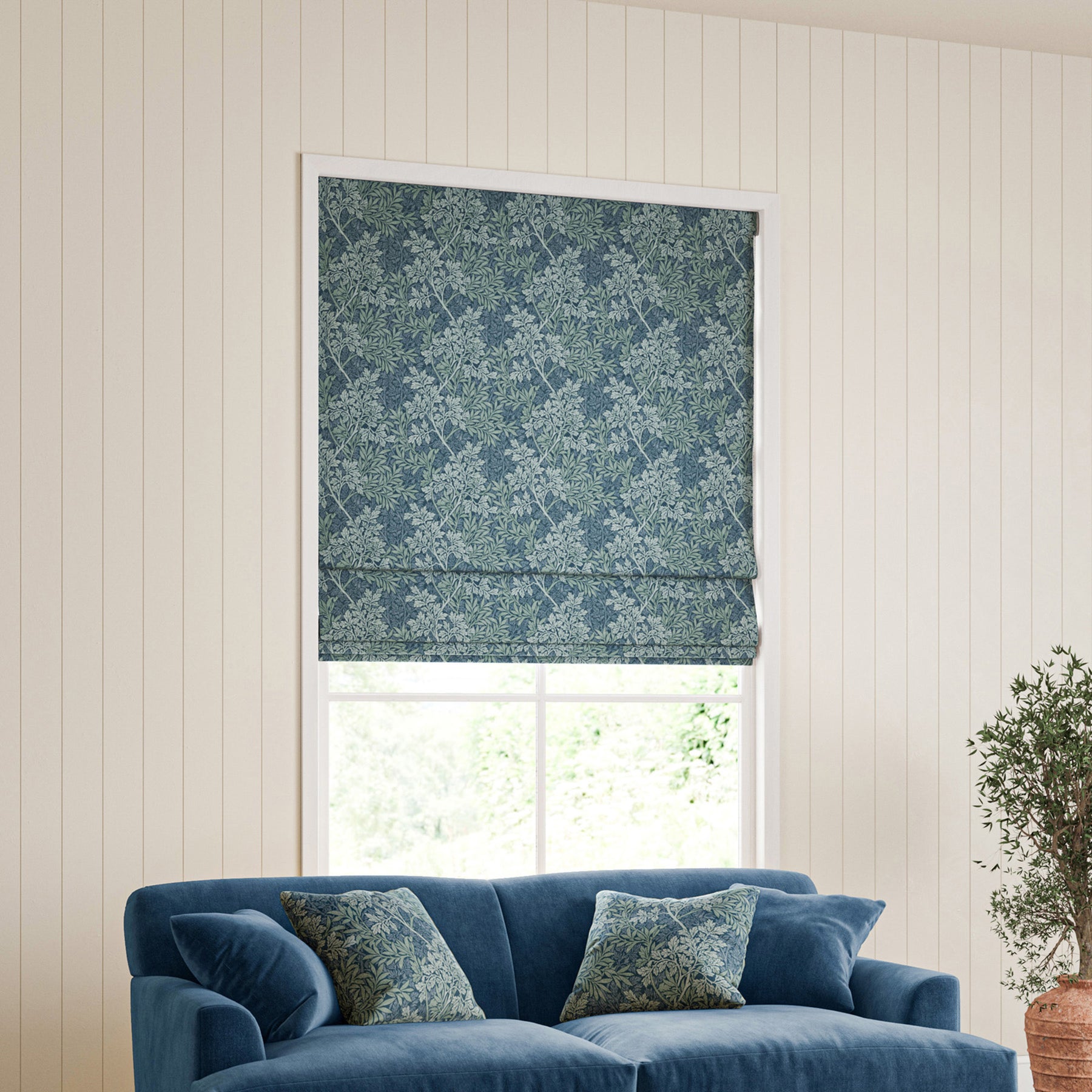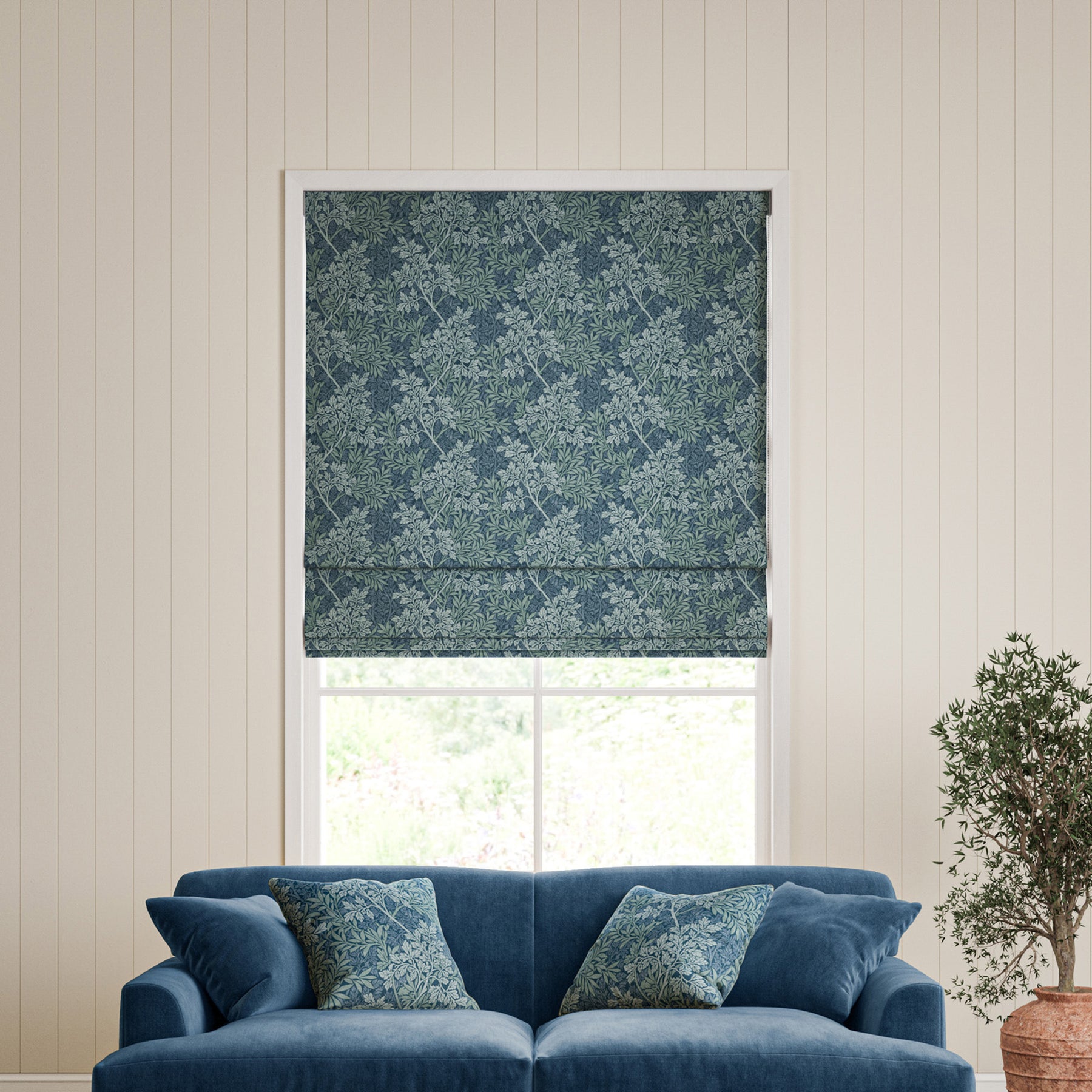 The William Morris Foliage Made To Measure Roman Blind in Indigo is crafted from 100% cotton, offering a natural and durable fabric choice. This blind features the iconic Foliage pattern from the renowned William Morris collection, known for its intricate botanical designs and timeless appeal. Custom-made to your exact measurements, it ensures a perfect fit for your windows, enhancing your interior with a classic yet vibrant touch. The rich indigo shade adds depth and sophistication, making it an excellent choice for both traditional and contemporary settings. Ideal for those seeking quality, style, and heritage in window dressings.
