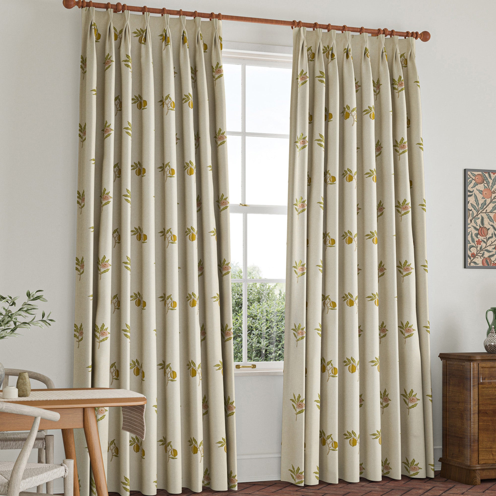 These made-to-measure curtains feature the iconic Fruit Embroidery design from the William Morris collection, presented in a rich Moss shade. Crafted from a durable blend of 52% polyester and 48% cotton, they offer both longevity and a natural feel. The intricate embroidery is made from 100% viscose, adding a refined texture and depth to the fabric. Designed to fit your windows perfectly, these curtains combine classic artistry with practical materials, enhancing any room with timeless elegance and expert craftsmanship.